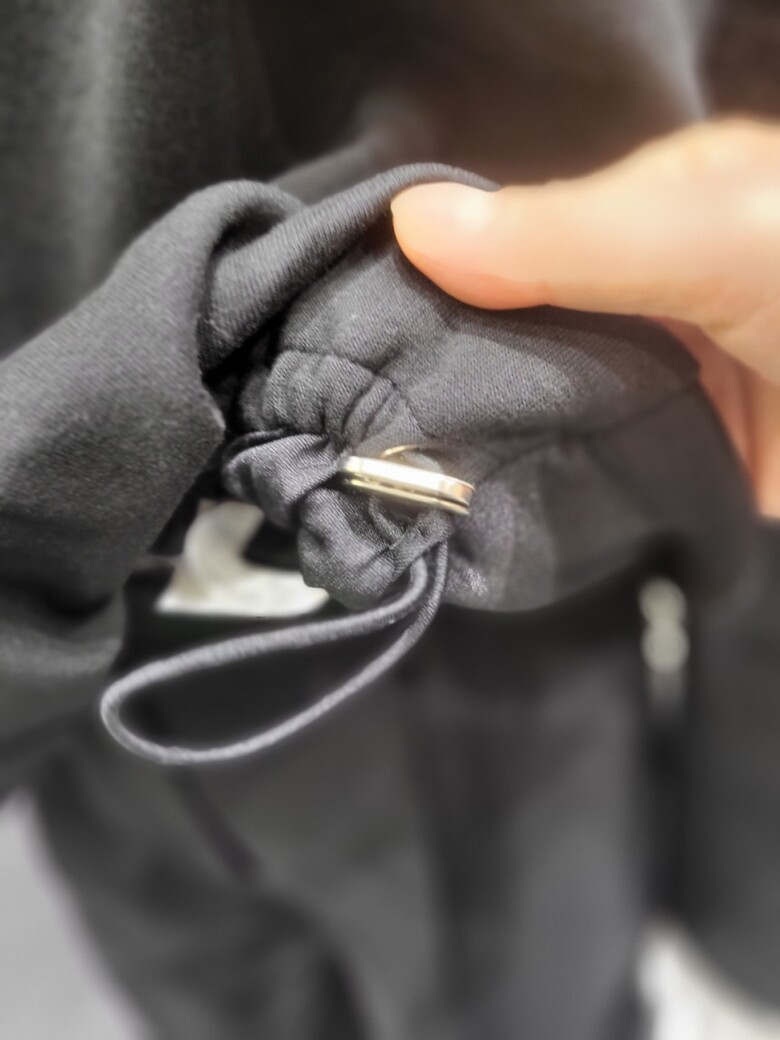 적당한 기장에 여유있는 품과 드랍숄더로 아방한 핏이며, 앞판의 턱과 스트링으로 핏에 완성도를 더해줍니다.