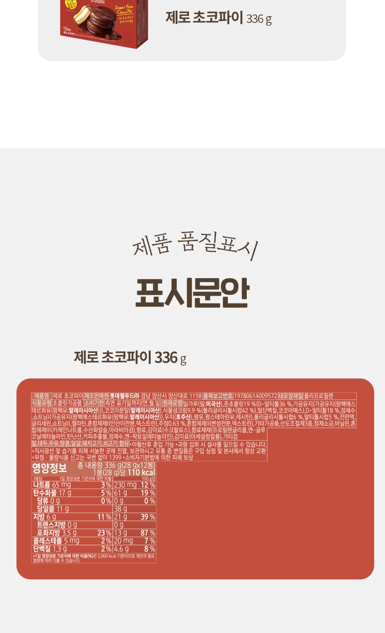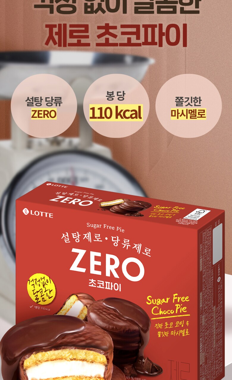 [롯데] ZERO 무설탕 초코파이 336g 12봉 x 4곽 세트