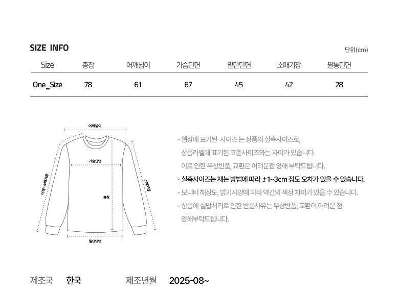 • 처음 배송된 상품상태와 다를 경우(세탁/착용 후 외출하신 경우) 반품이 불가합니다.