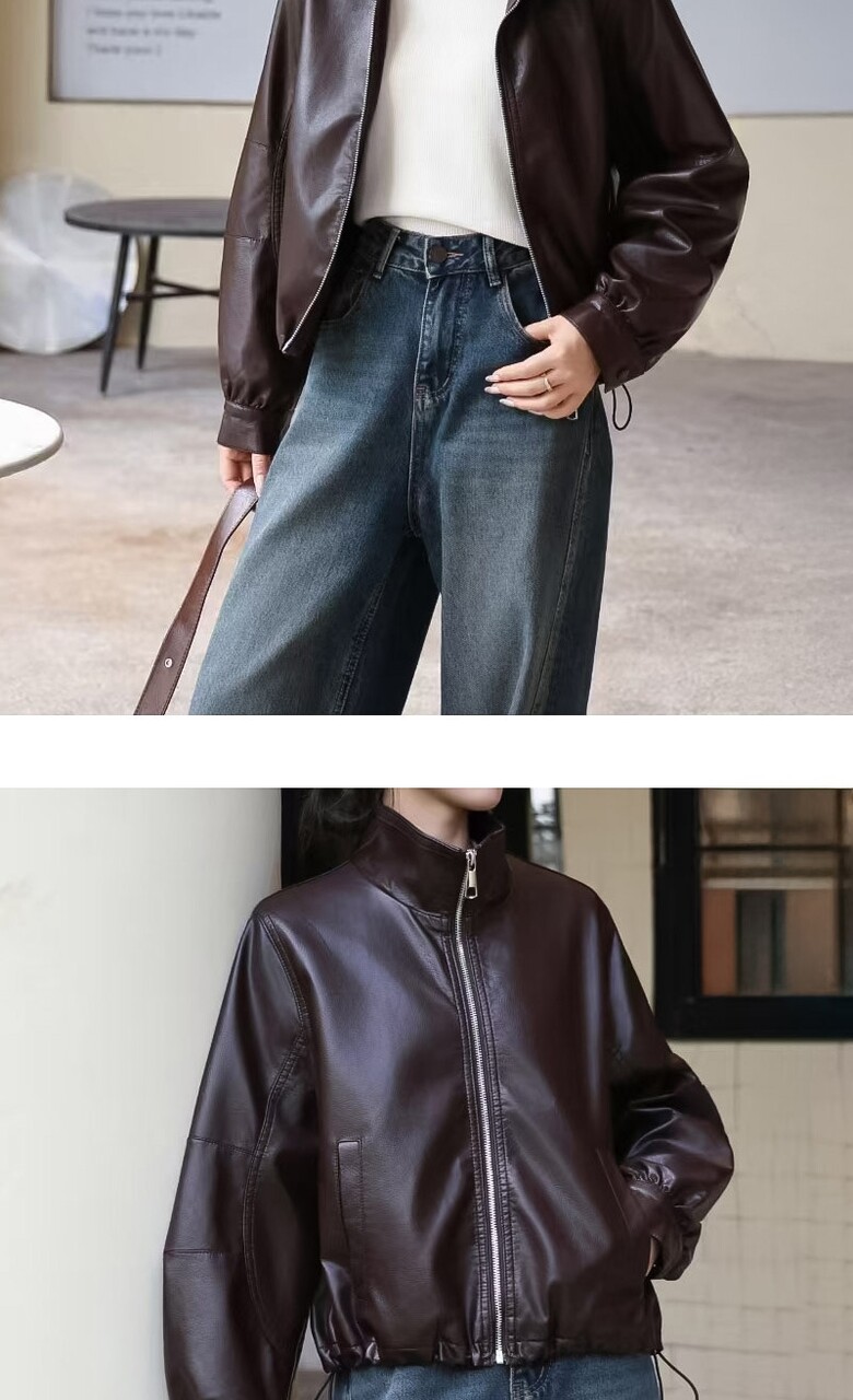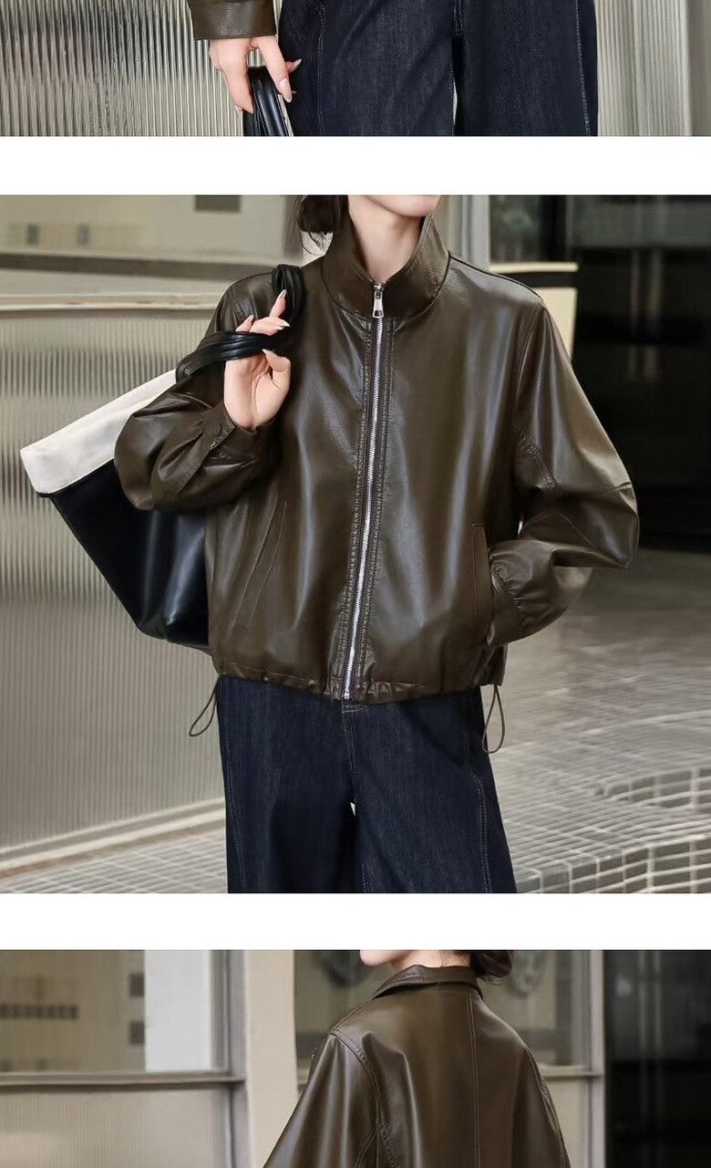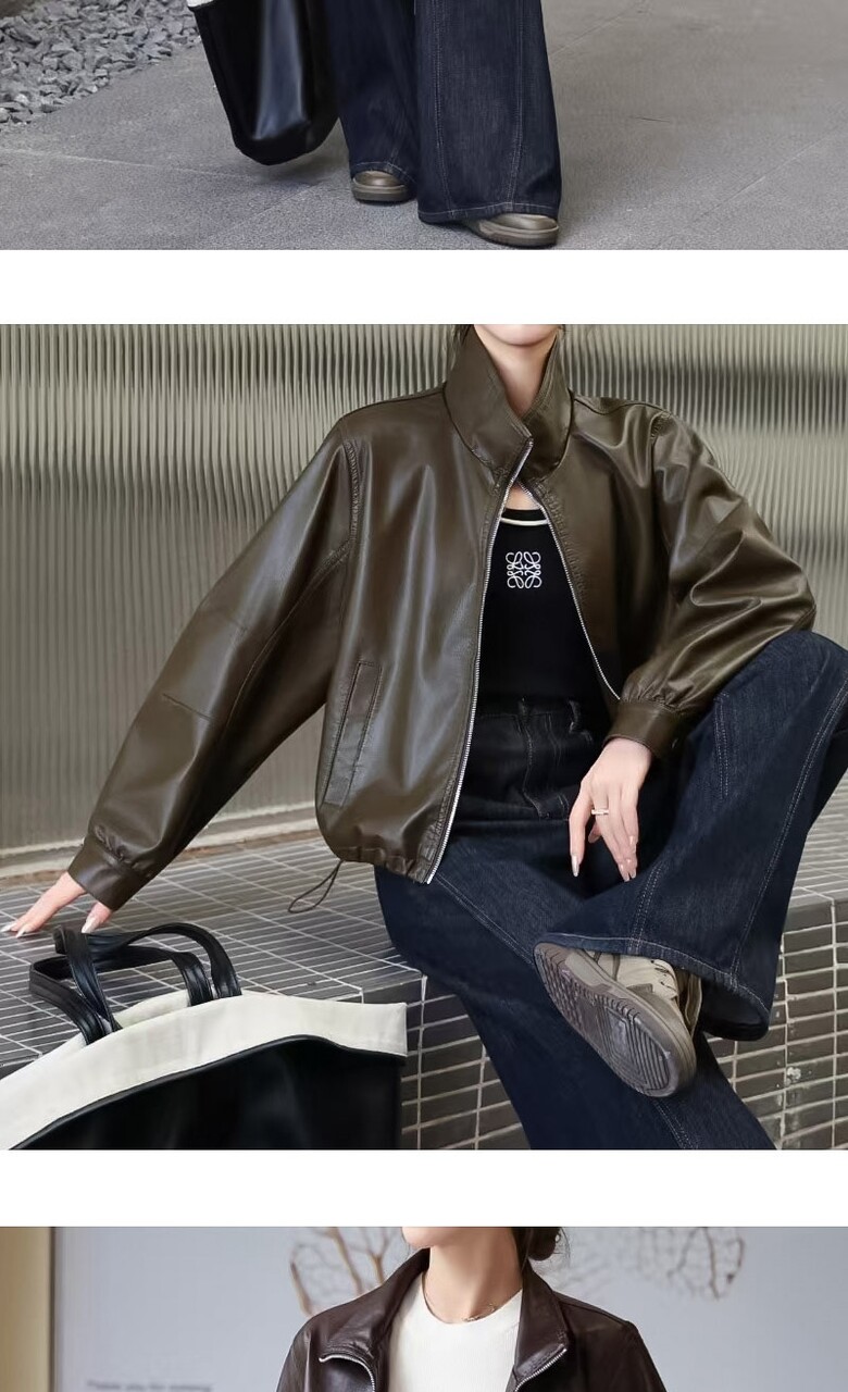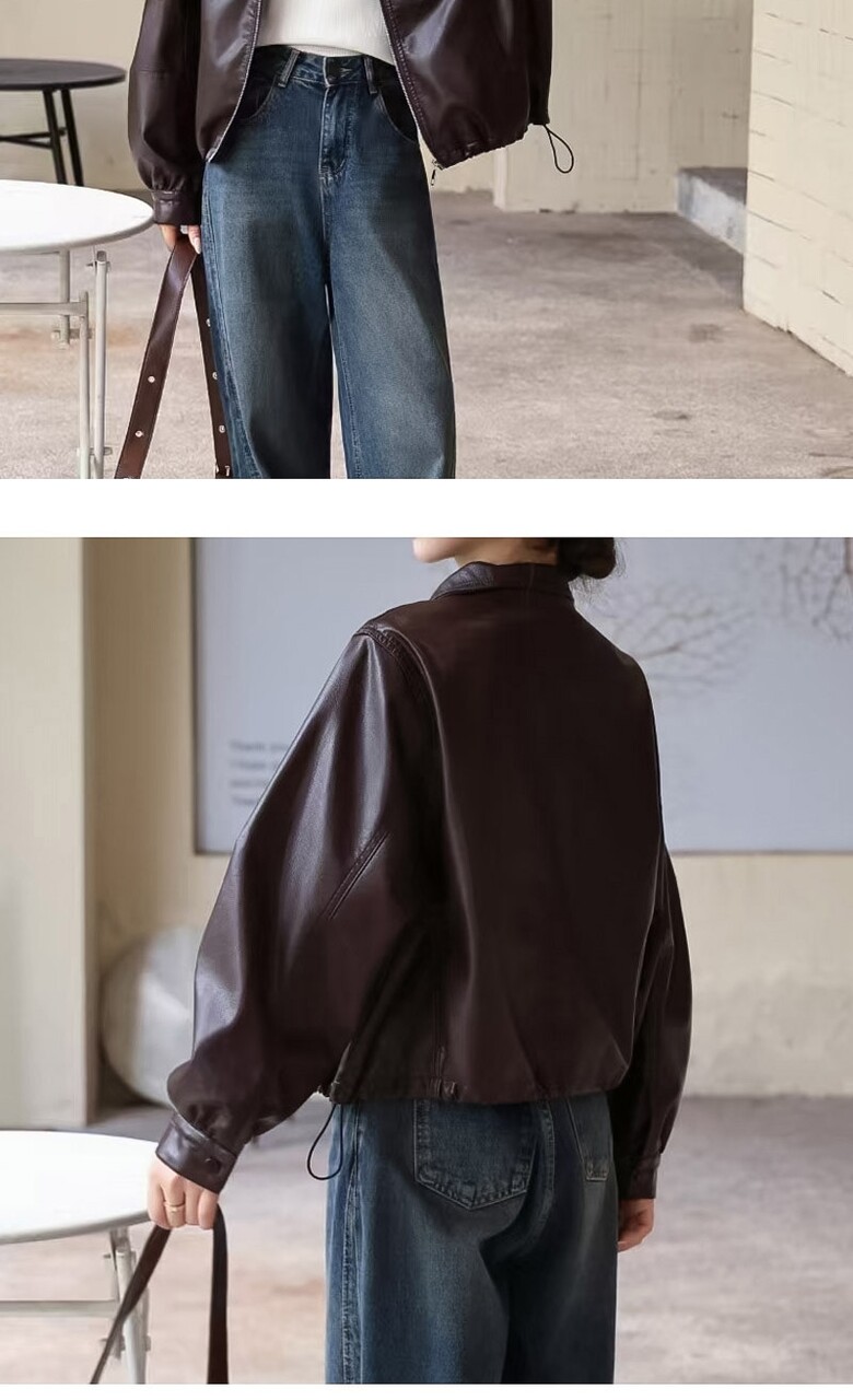 [~77까지]오버핏 모도 밑단 스트링 레더 자켓