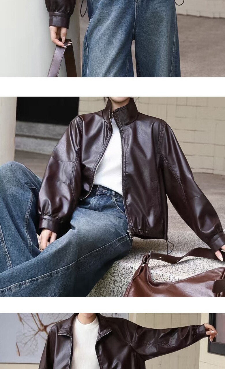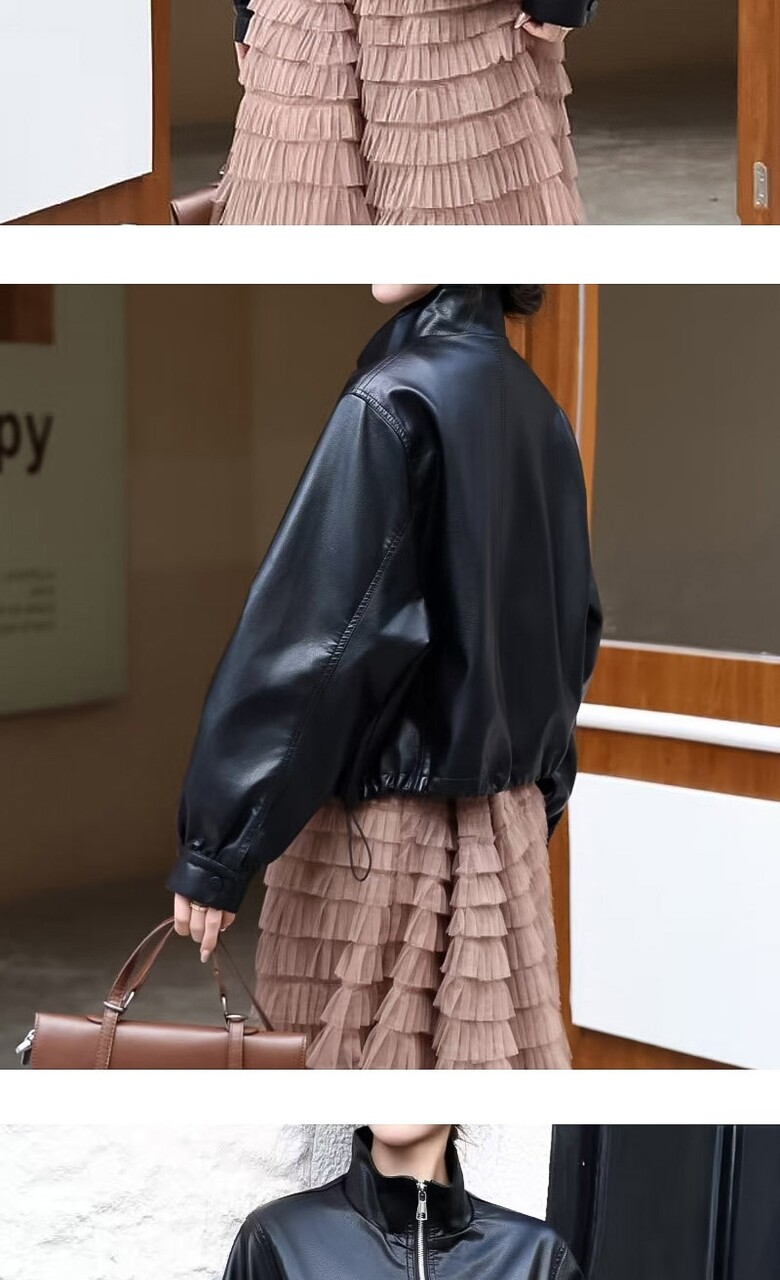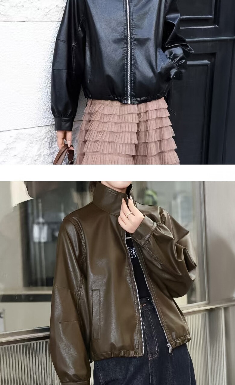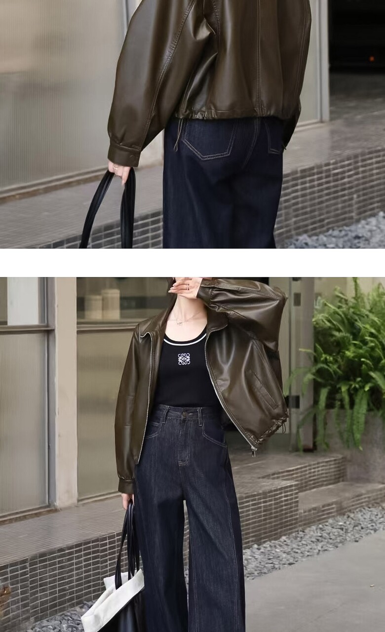[~77까지]오버핏 모도 밑단 스트링 레더 자켓