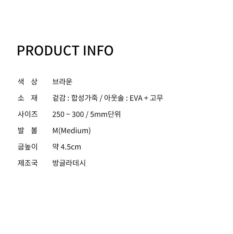 | 1. 제품 소재 (운동화인 경우에는 겉감, 안감을 구분하여 표시) | 겉감:합성가죽 / 아웃솔 : EVA+고무 |