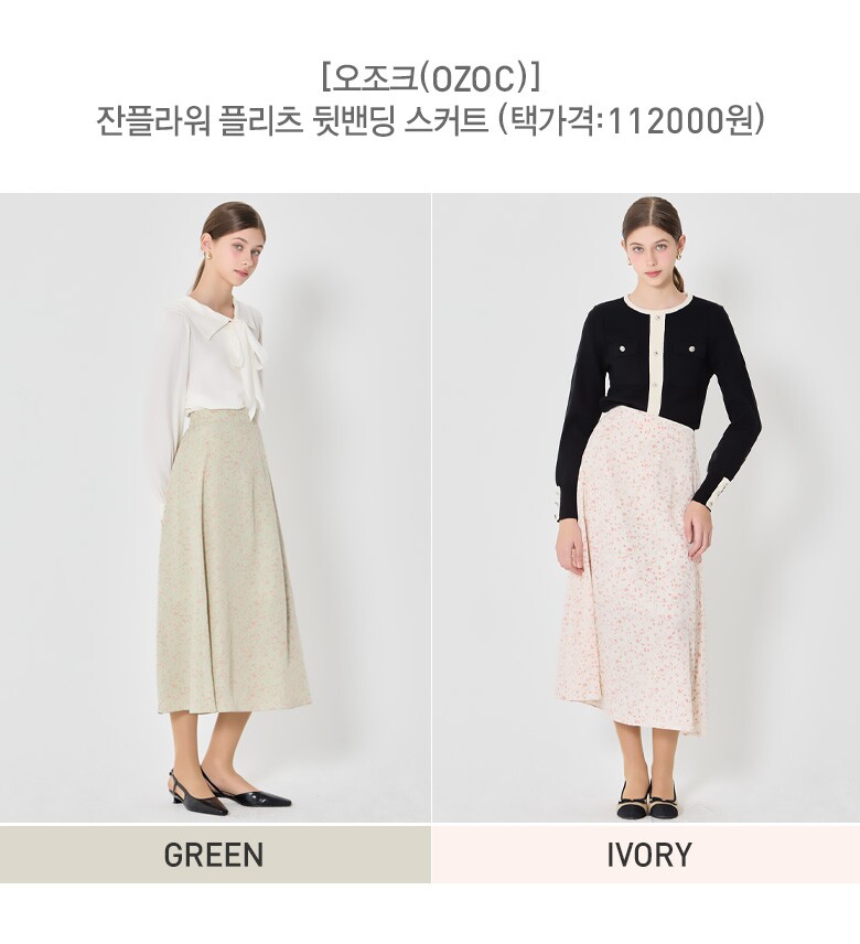 [오조크(OZOC)] 플라워 뒷밴딩 A라인 스커트 (택가격: 112000원)
