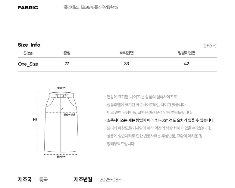 1. 제품 소재 (섬유의 조성 또는 혼용률을 백분율로 표시, 기능성인 경우 성적서 또는 허가서) | 폴리에스테르96% 폴리우레탄4% |