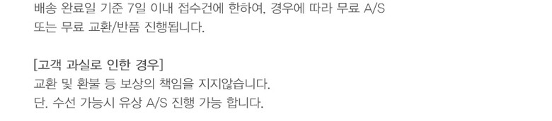 • 표시/광고와 상이, 제품 하자의 경우 수령 후 3개월 이내, 또는 그 사실을 안 날로부터 30일 이내 교환/반품 가능합니다.
