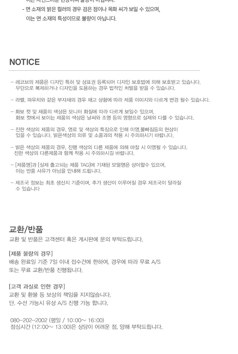 | 1. 제품 소재 (섬유의 조성 또는 혼용률을 백분율로 표시, 기능성인 경우 성적서 또는 허가서) | 상세페이지 참조 |