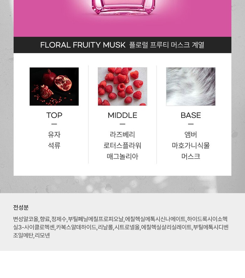 7. 주요성분 정제수, 프로판디올, 스쿠알란, 백화사설초추출물, 디메치콘, 부틸렌글라이콜, 감초추출물, 메도우폼씨오일, 글리세린, 작약추출물, 연꽃추출물, 옥죽추출물, 마돈나백합비늘줄기추출물, 지황추출물, 꿀, 녹차추출물, 인삼추출물, 하이드롤라이즈드인삼사포닌, 뽕나무뿌리추출물, 쉐어버터, 1, 2-헥산디올, C12-20알킬글루코사이드, C14-22알코올, 글리세릴스테아레이트, 글리세릴카프릴레이트, 라우릭애씨드, 메톡시피이지-114/폴리엡실론카프롤락톤, 미리스틱애씨드, 베헤닐알코올, 스테아릭애씨드, 아라키딜글루코사이드, 아라키딜알코올, 에칠헥실글리세린, 잔탄검, 카보머, 카프릴릴글라이콜, 트로메타민, 팔미틱애씨드, 하이드로제네이티드레시틴, 디소듐이디티에이, 페녹시에탄올, 향료, 제라니올, 시트랄, 리날룰, 시트로넬올, 리모넨 확인