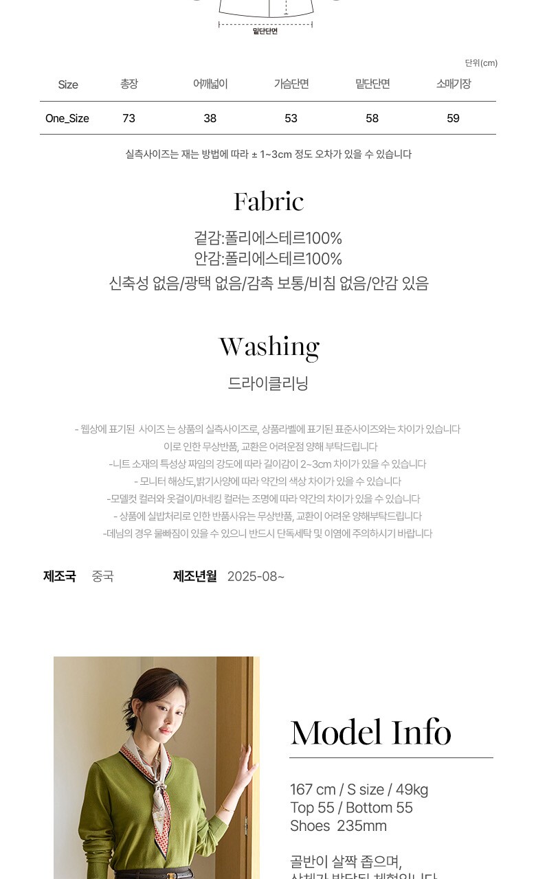 • 처음 배송된 상품상태와 다를 경우(세탁/착용 후 외출하신 경우) 반품이 불가합니다.