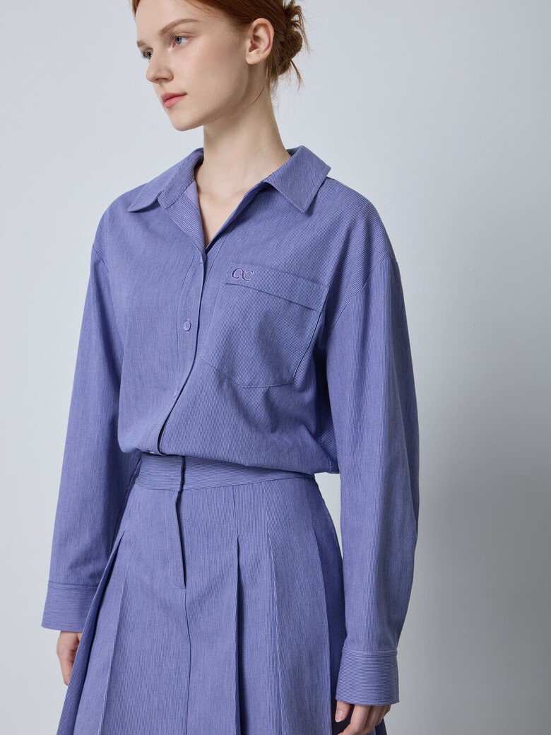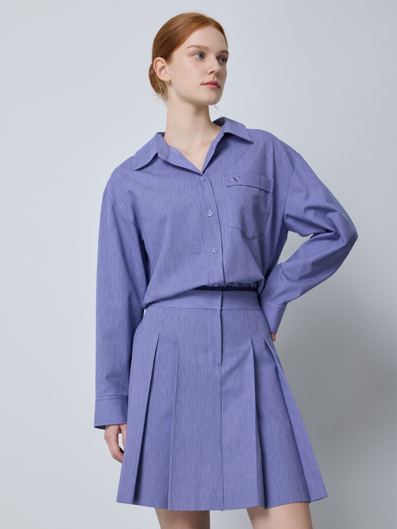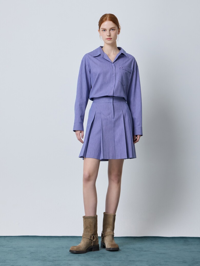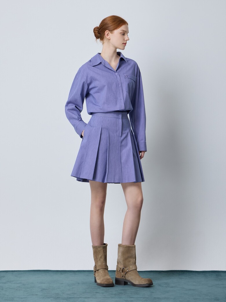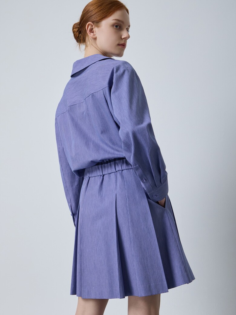 - 셔츠 상의의 셔링과 주름 스커트가 볼륨감있는 라인을 연출해 주며