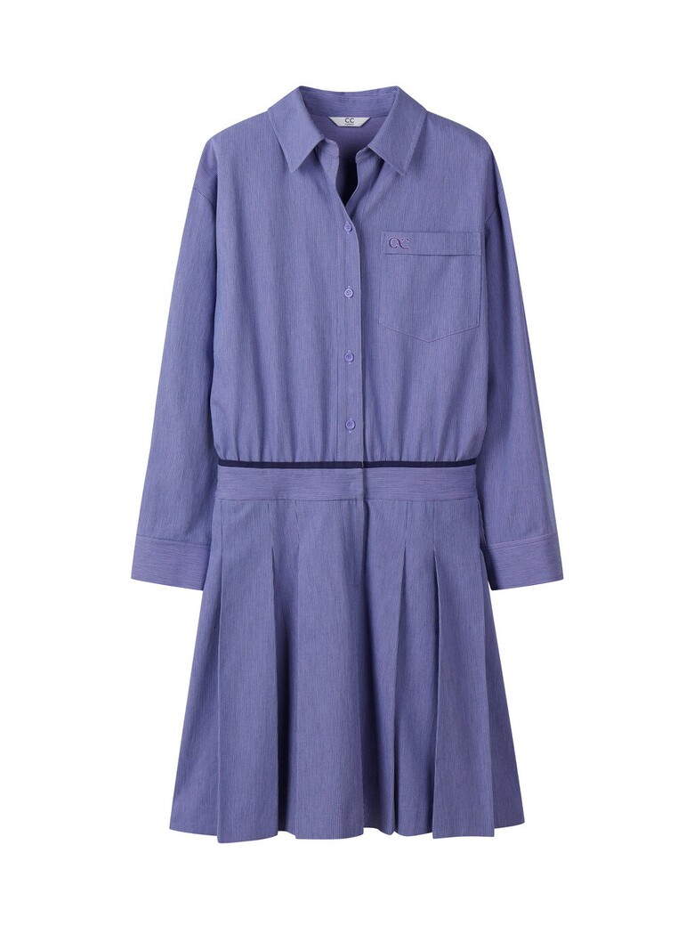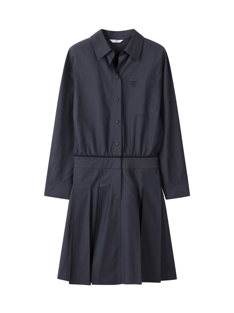 - 가슴 포켓의 로고 자수가 포인트되는 셔츠형 원피스입니다.