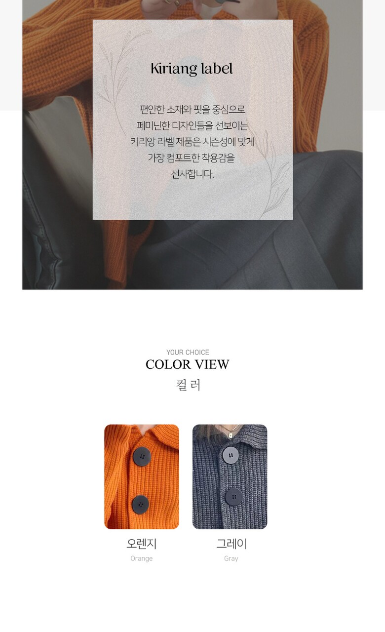 [키리앙] 래이드 카라넥 버튼 니트 가디건