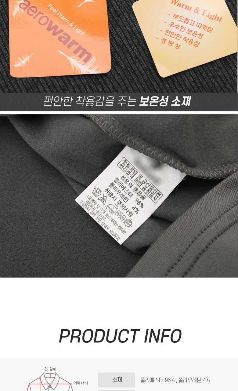 남성 기모안감 에어로웜 반폴라 경량 아웃도어 티셔츠 IU-MOK-412