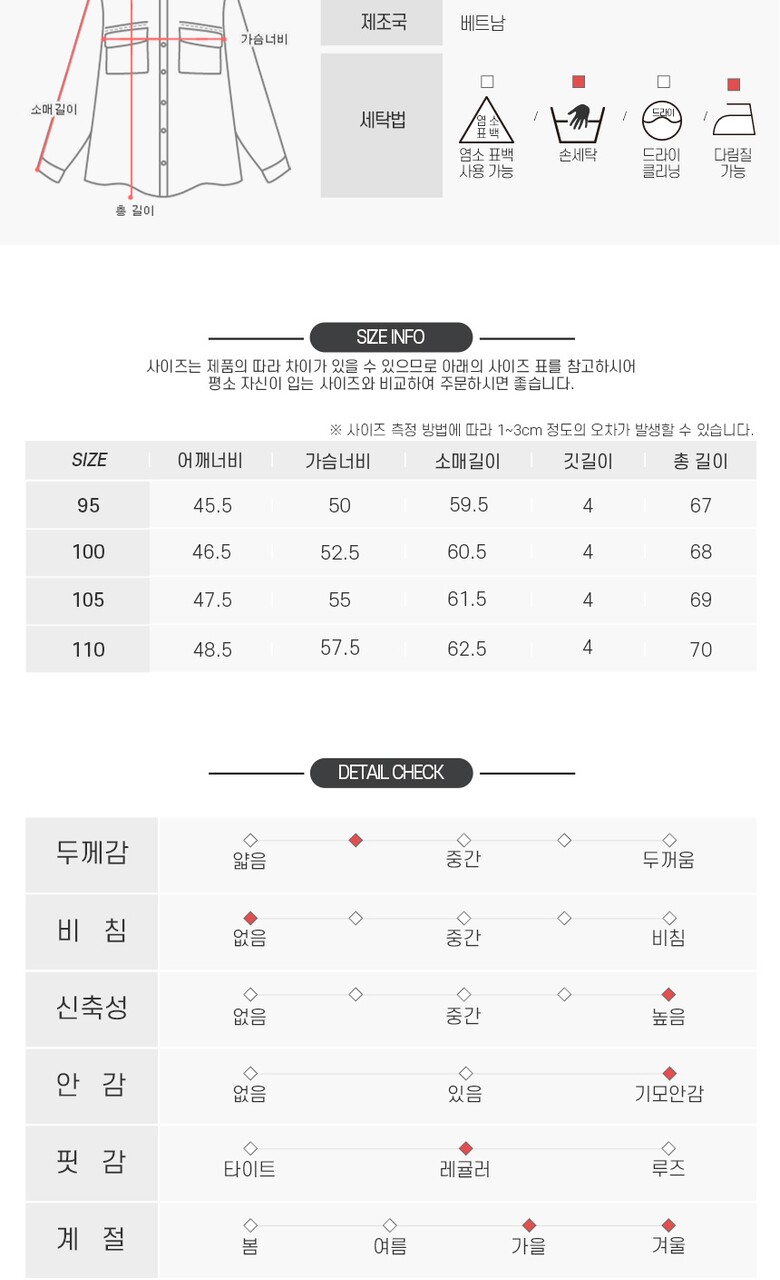 6. 세탁방법 및 취급시 주의사항 | 단독손세탁,다림질가능 |