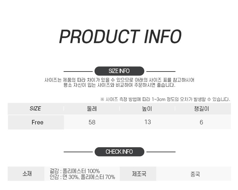• 처음 배송된 상품상태와 다를 경우(세탁/착용 후 외출하신 경우) 반품이 불가합니다.