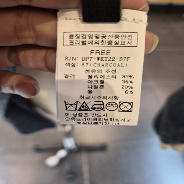제품소재 : 폴리에스터39%,아크릴35%,나일론20%,울6%
