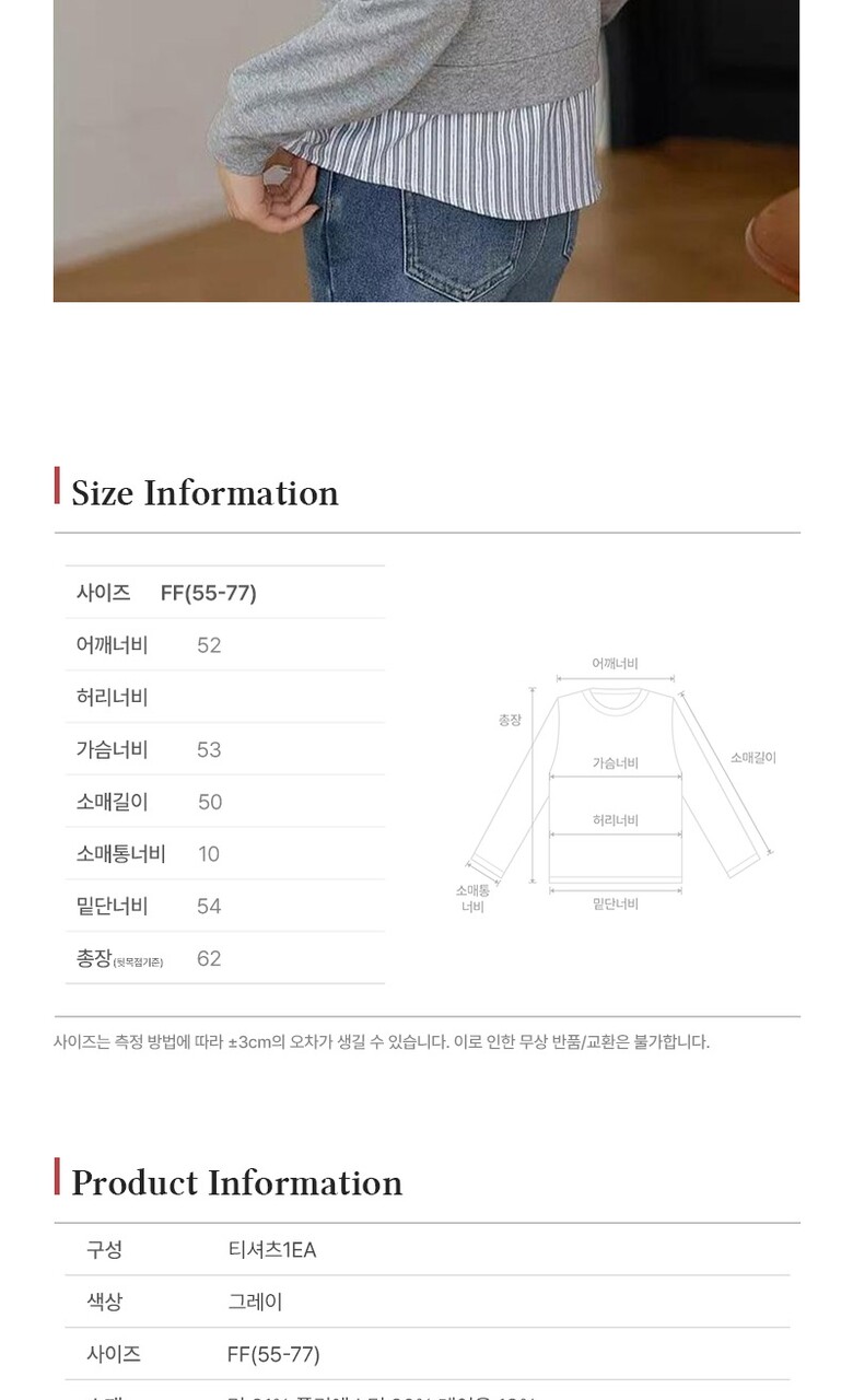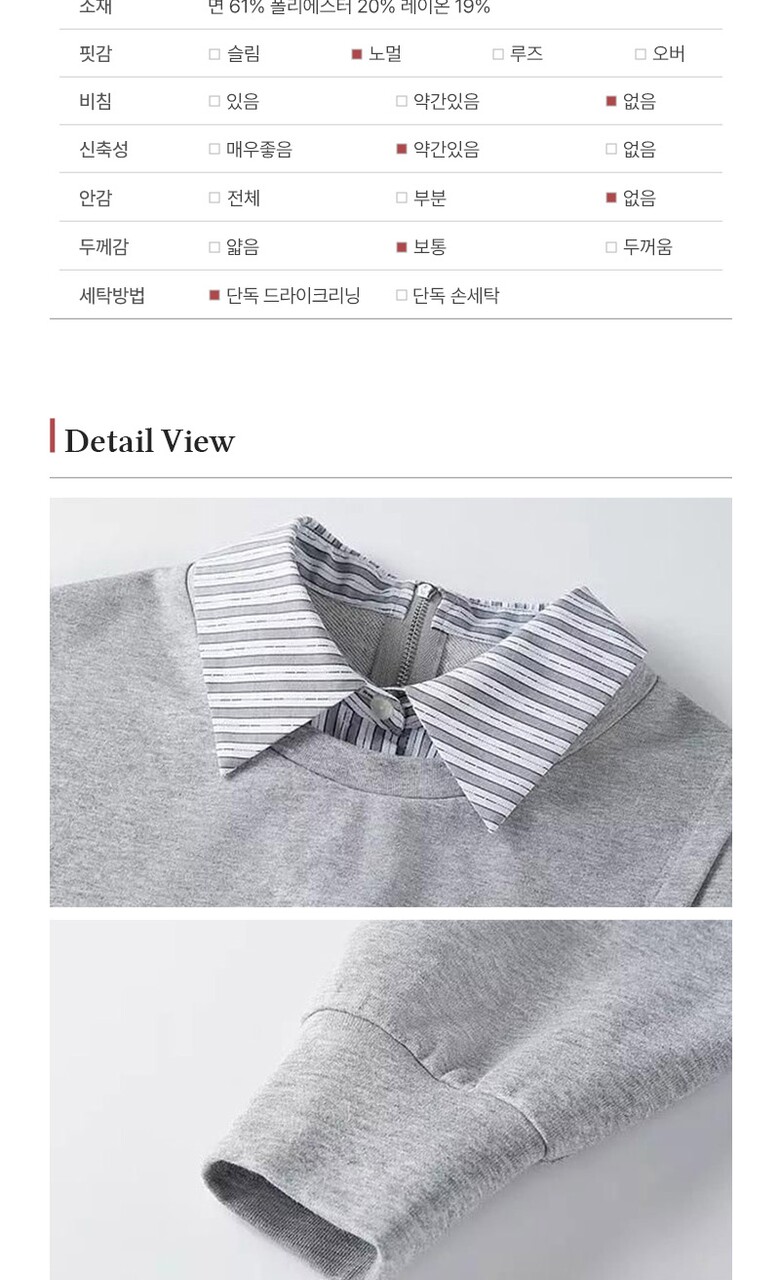 1. 제품 소재 (섬유의 조성 또는 혼용률을 백분율로 표시, 기능성인 경우 성적서 또는 허가서) | 면 61% 폴리에스터 20% 레이온 19% |