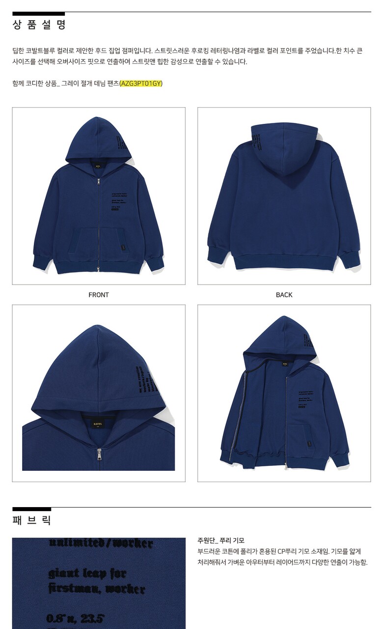 #블루테일 #아우터 #집업 #AZG3JP03BU #블루테일 #BLUETAIL