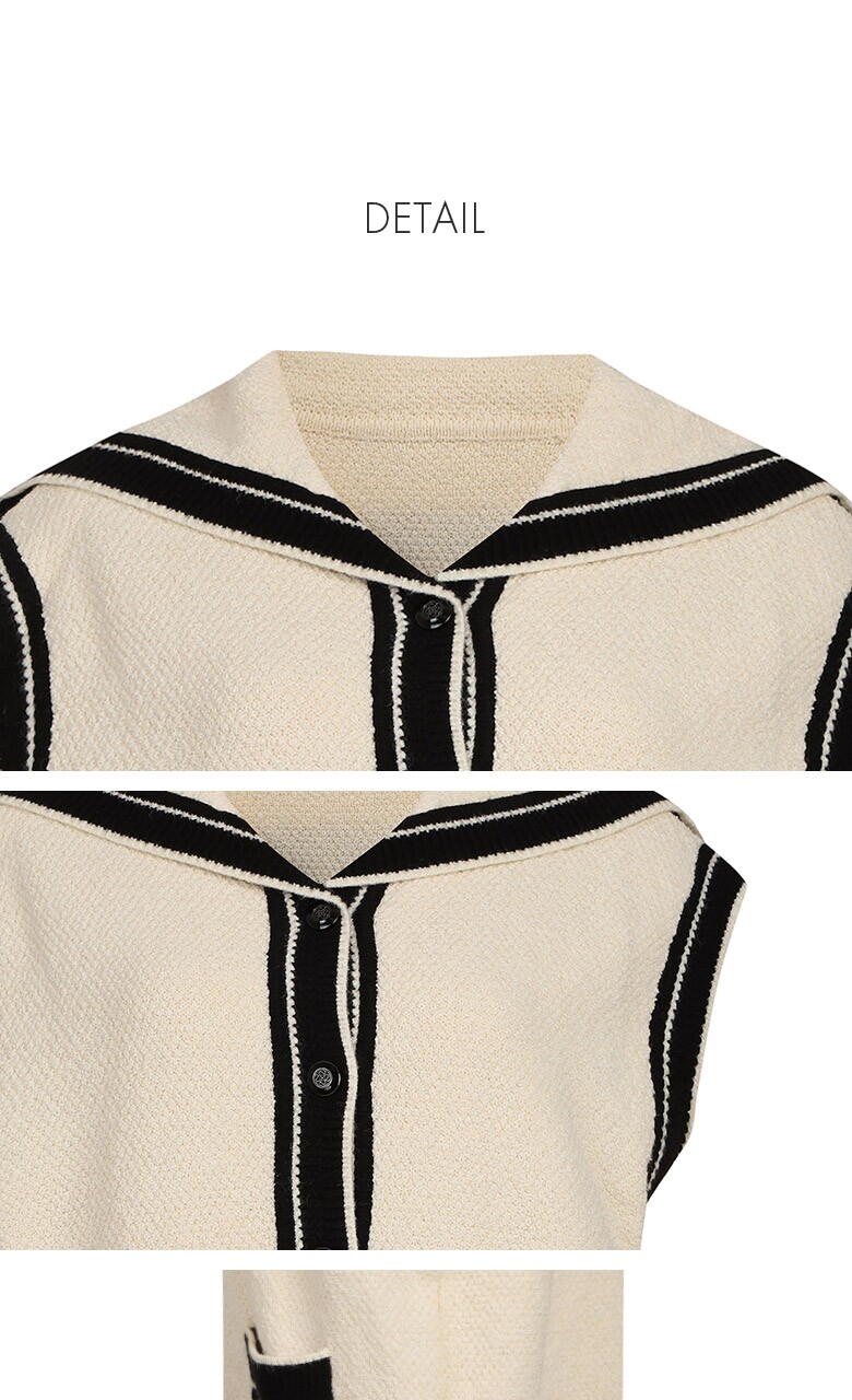(예쎄) 배색 세일러카라 니트 베스트(YW11KV41W)