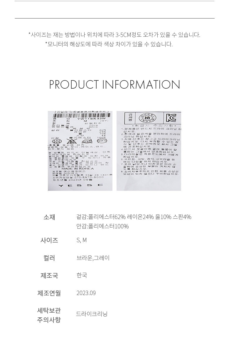 6. 세탁방법 및 취급시 주의사항 | 상세페이지및 라벨참조 |