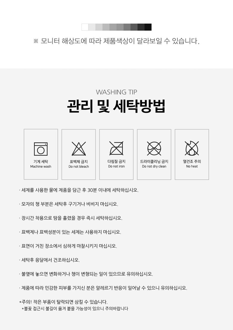 • 처음 배송된 상품상태와 다를 경우(세탁/착용 후 외출하신 경우) 반품이 불가합니다.
