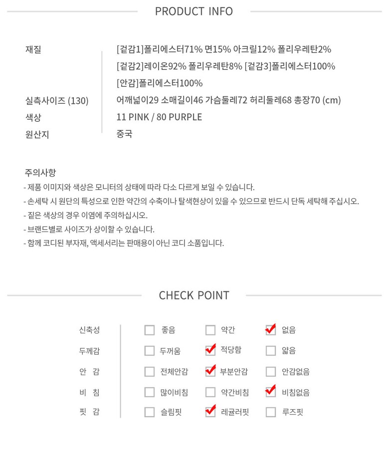 1. 제품 소재 (섬유의 조성 또는 혼용률을 백분율로 표시, 기능성인 경우 성적서 또는 허가서) | 상품상세참조 |