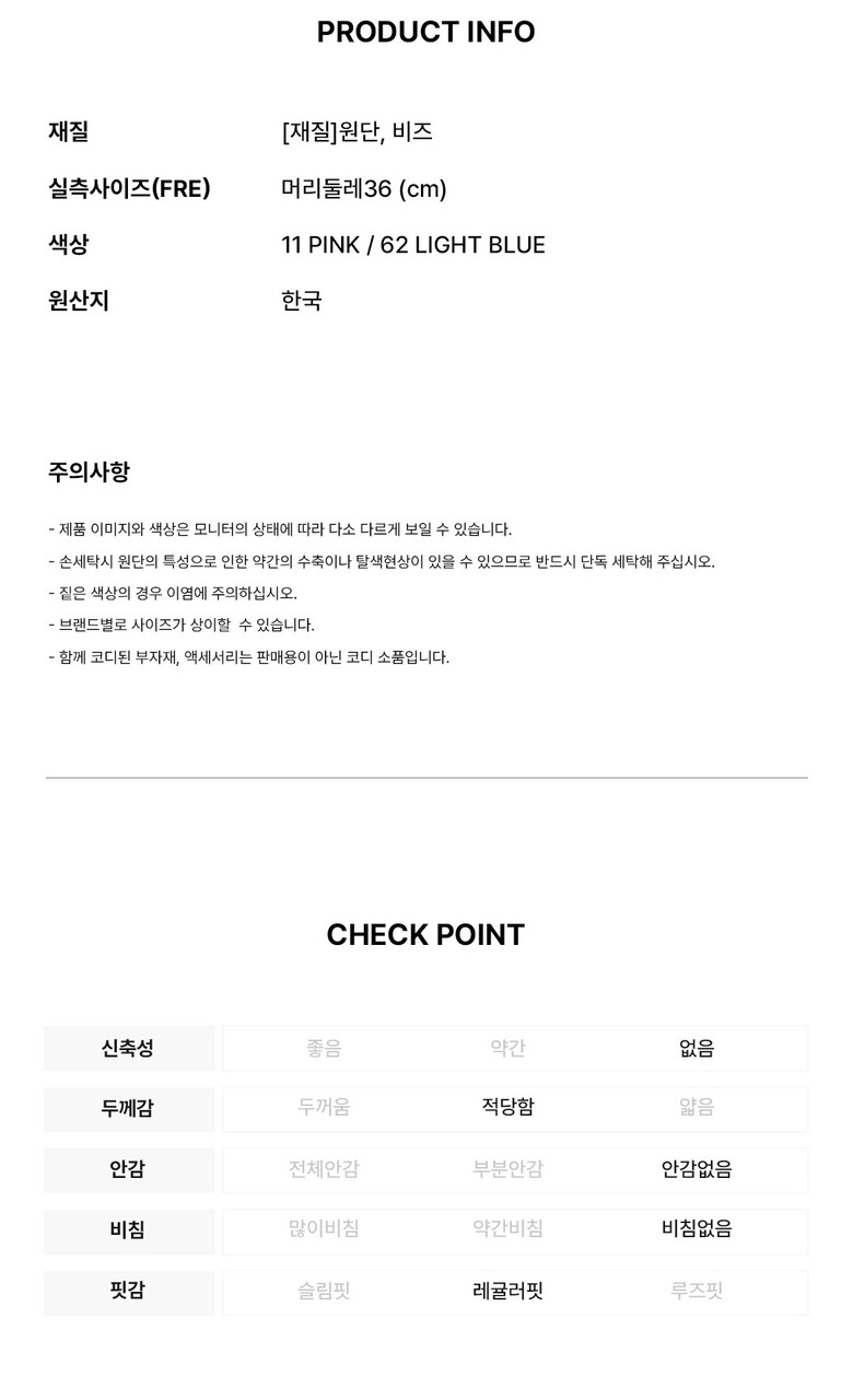 1. 제품 소재 (섬유의 조성 또는 혼용률을 백분율로 표시, 기능성인 경우 성적서 또는 허가서) | 상품상세참조 |