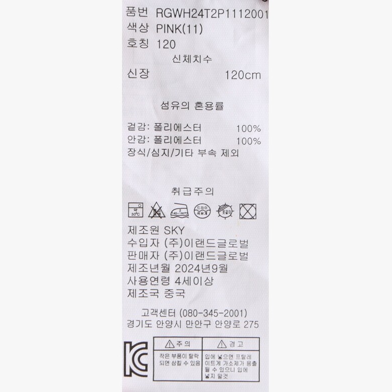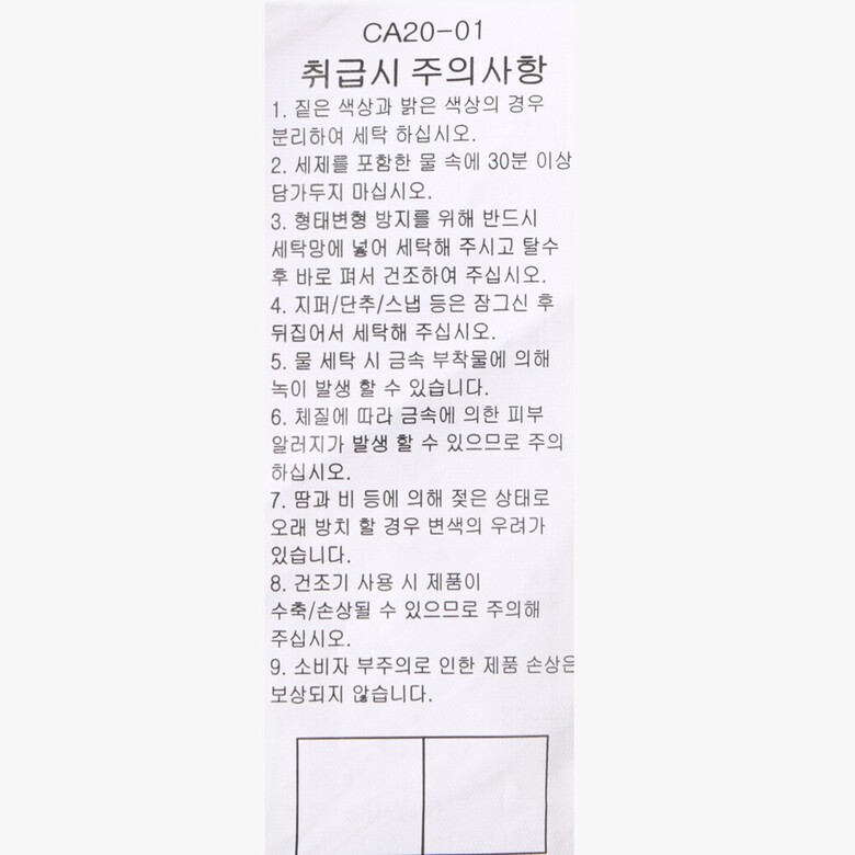 | 6. 세탁방법 및 취급시 주의사항 | 상품상세참조 |