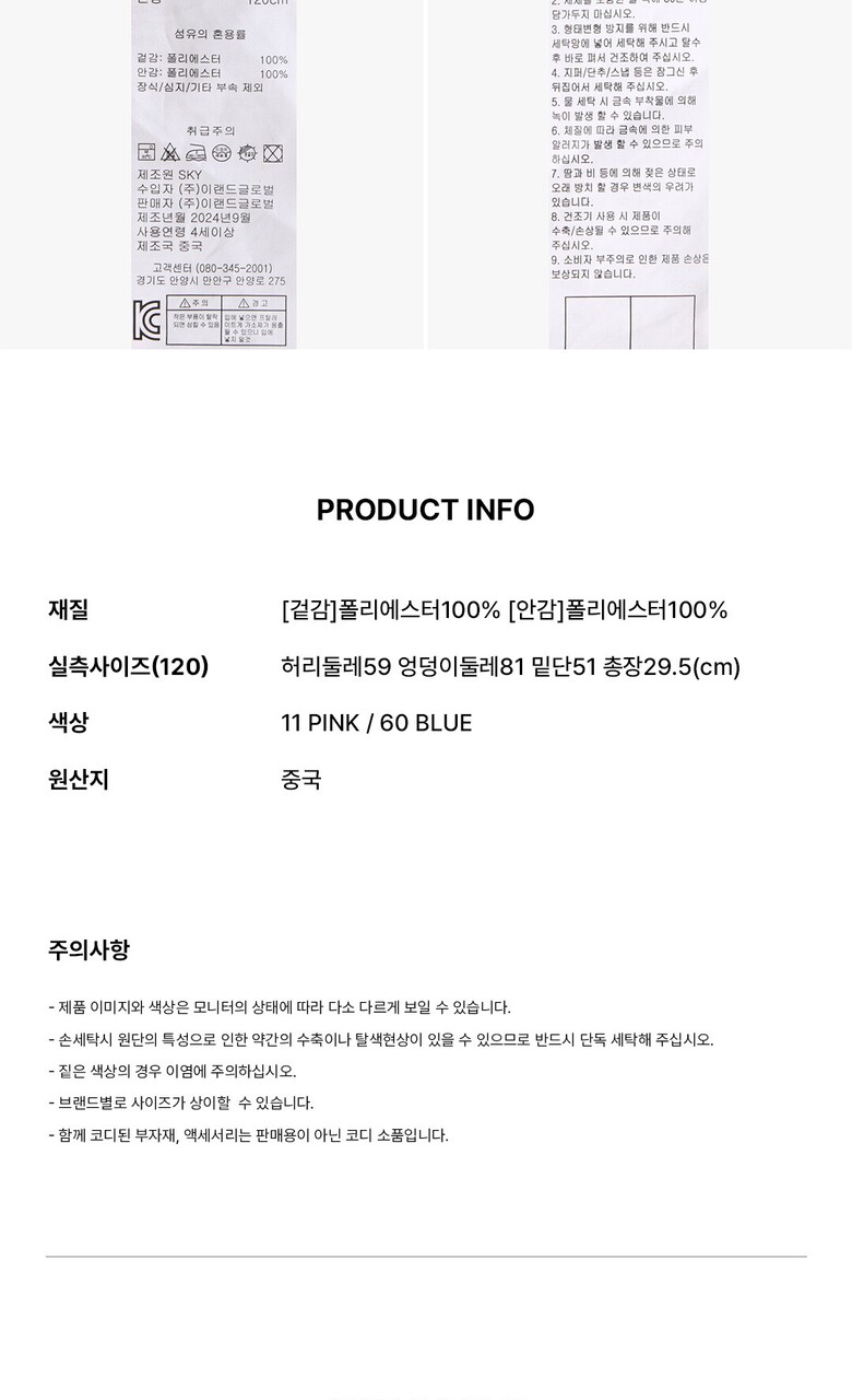 • 처음 배송된 상품상태와 다를 경우(세탁/착용 후 외출하신 경우) 반품이 불가합니다.
