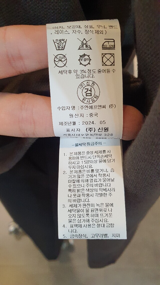 6. 세탁방법 및 취급시 주의사항 상품상세참조