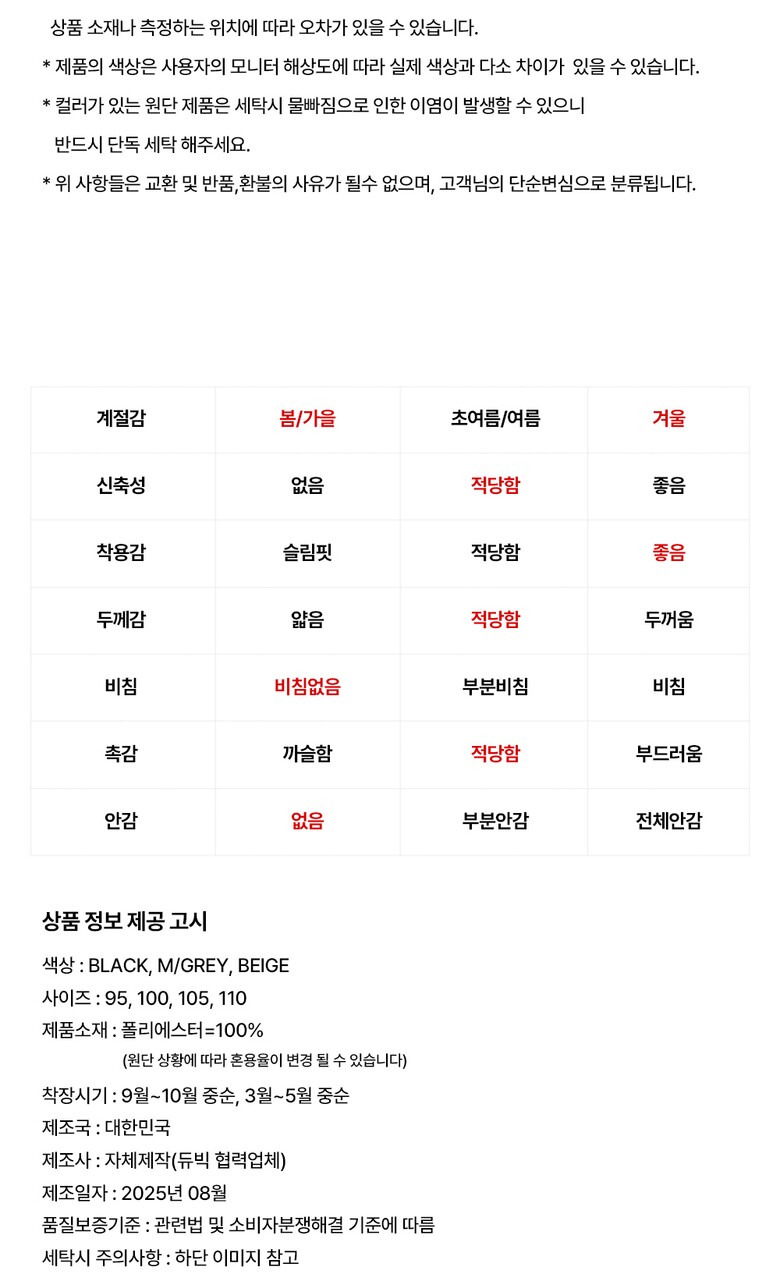 1. 제품 소재 (섬유의 조성 또는 혼용률을 백분율로 표시, 기능성인 경우 성적서 또는 허가서) 상품 이미지 참고