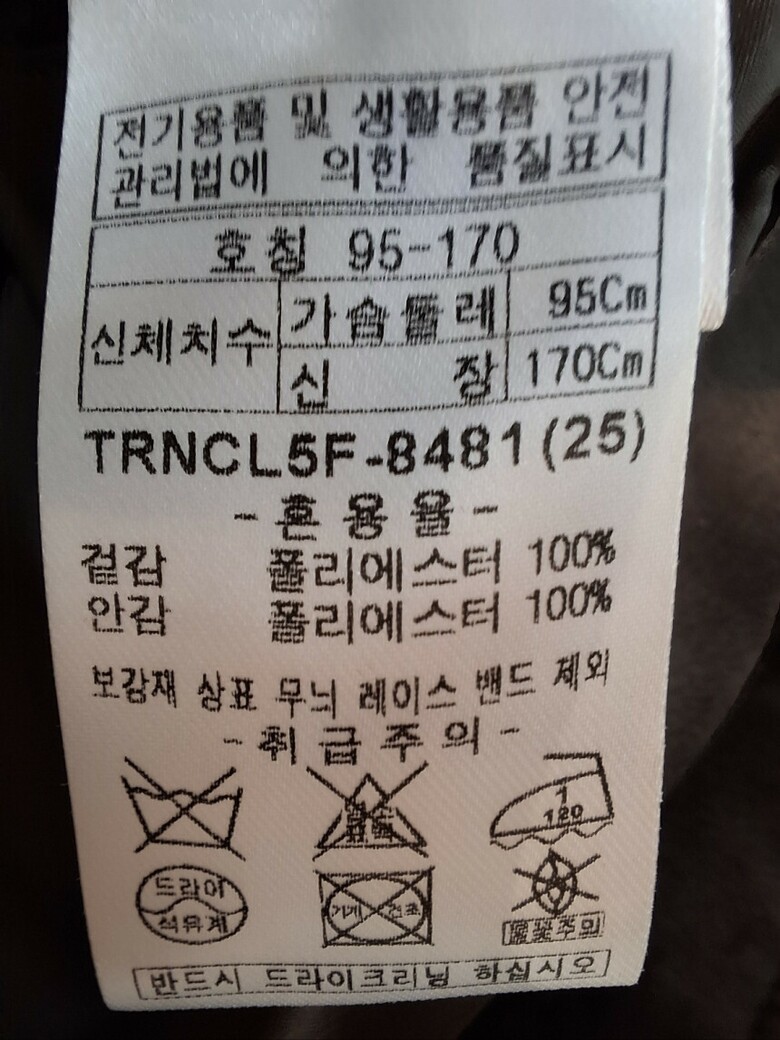 | 1. 제품 소재 (섬유의 조성 또는 혼용률을 백분율로 표시, 기능성인 경우 성적서 또는 허가서) | 겉감:폴리에스테르 100% / 안감:폴리에스테르 100% |