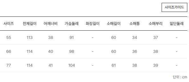 3. 치수 상품상세참조