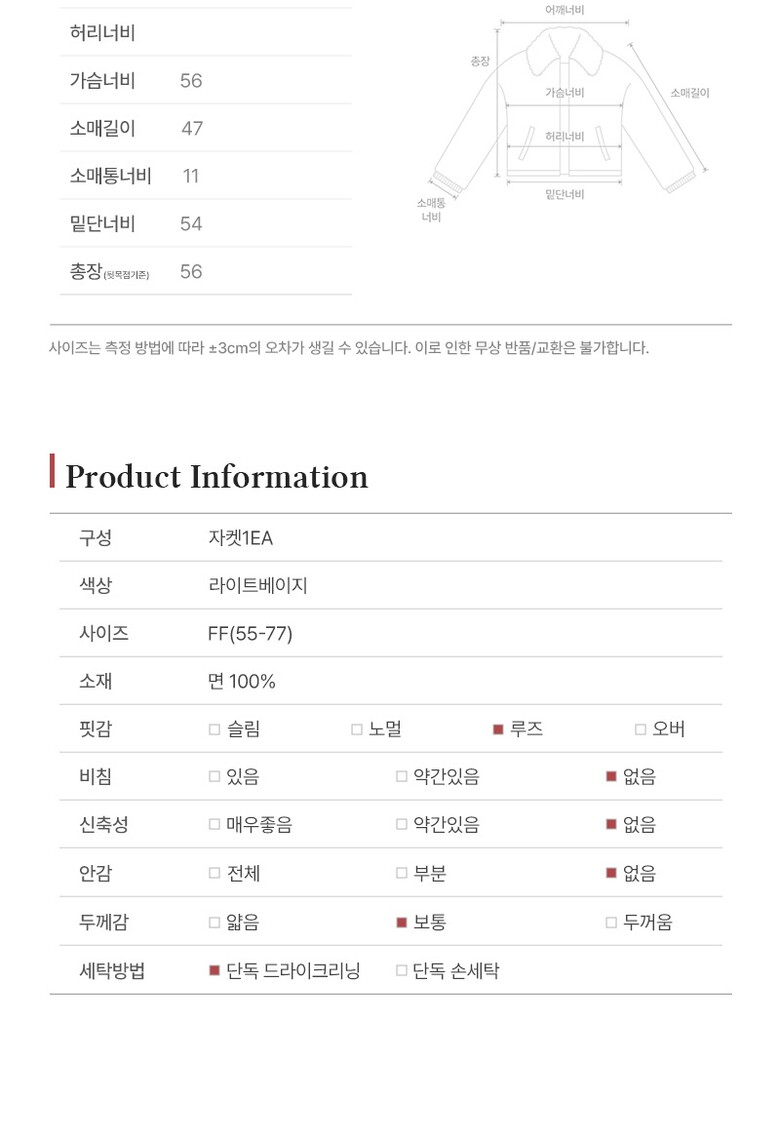 1. 제품 소재 (섬유의 조성 또는 혼용률을 백분율로 표시, 기능성인 경우 성적서 또는 허가서) | 면 100% |