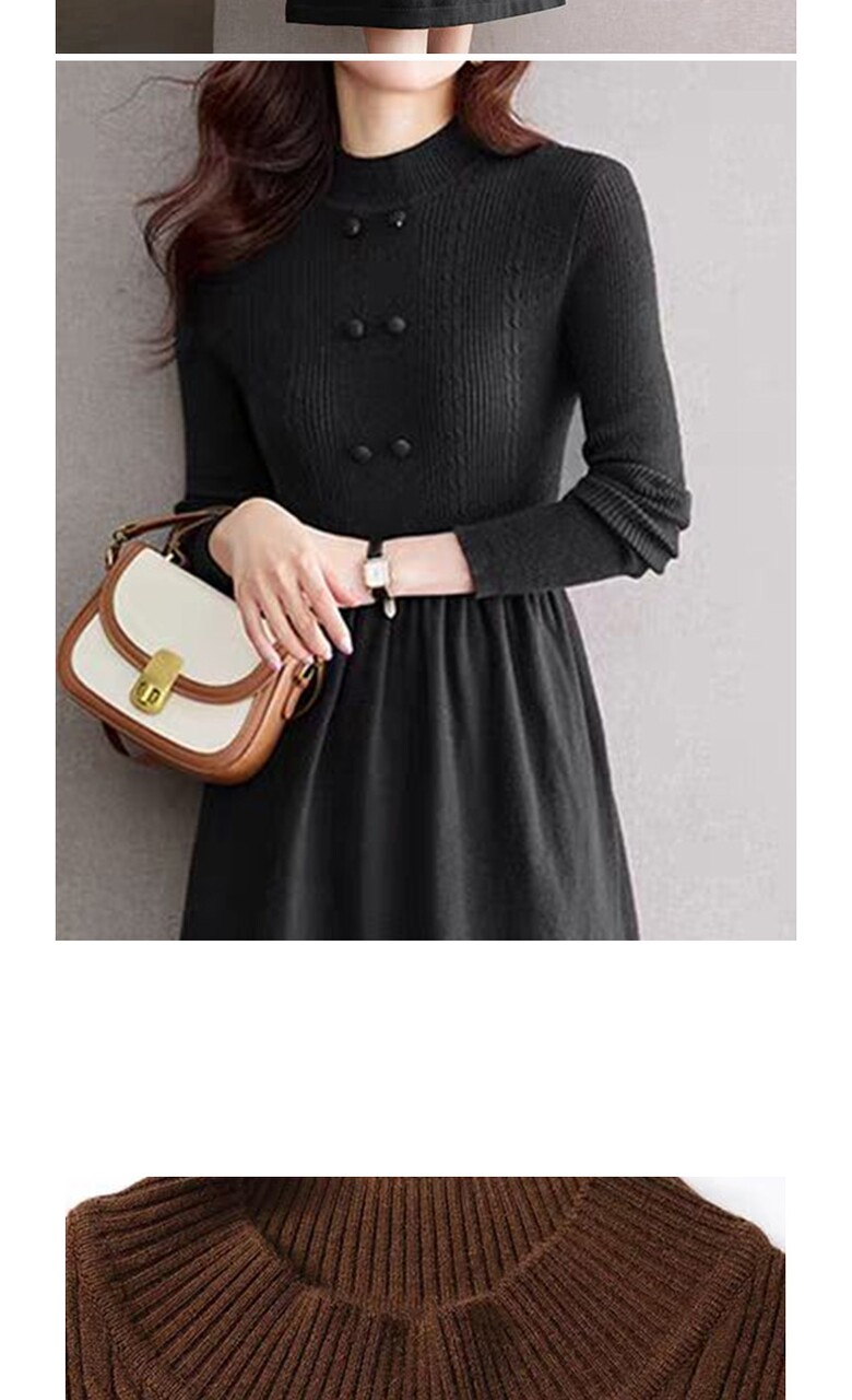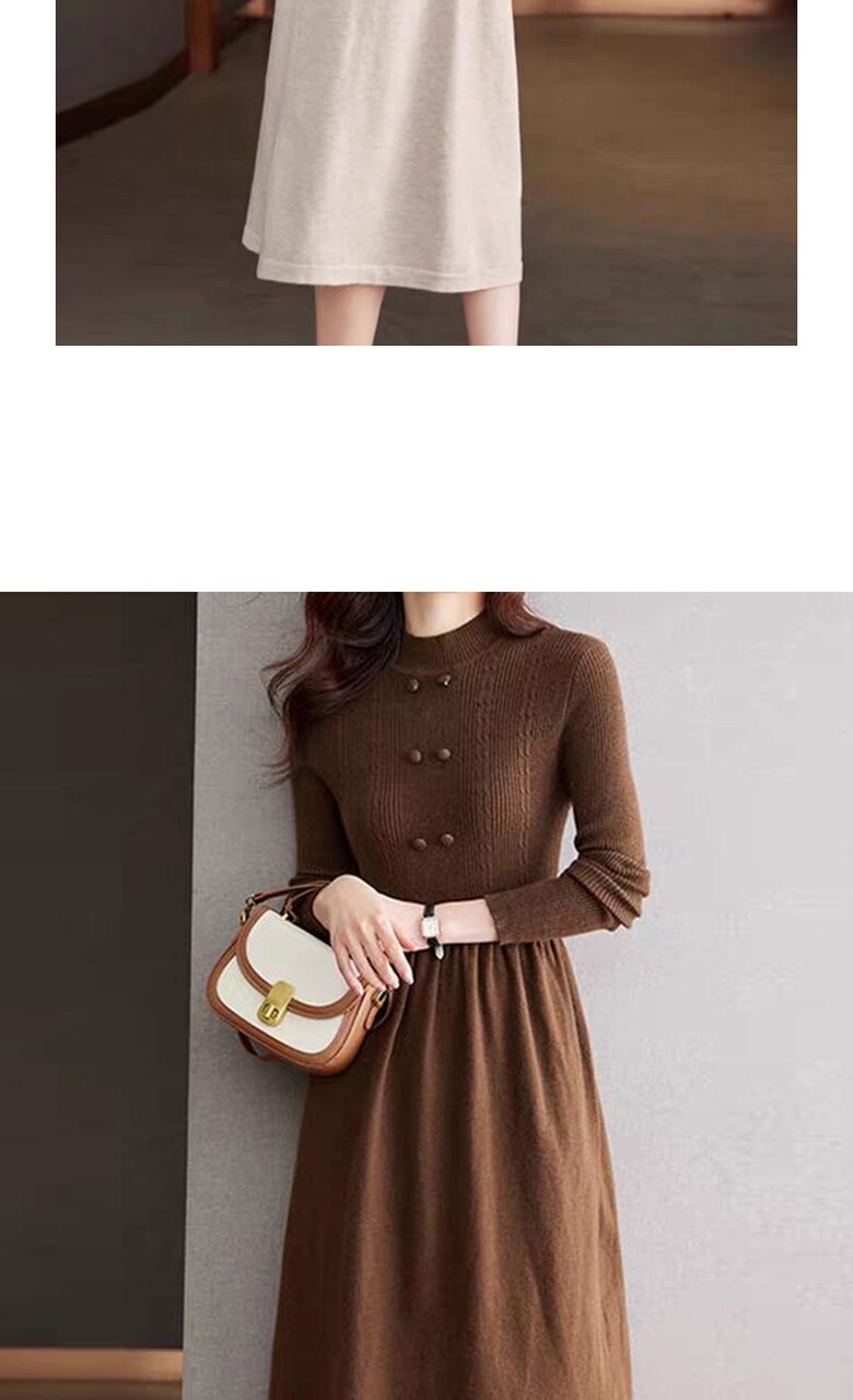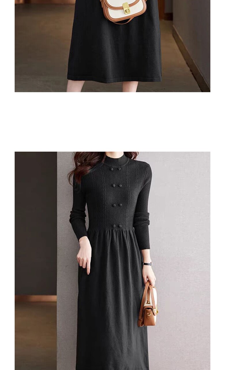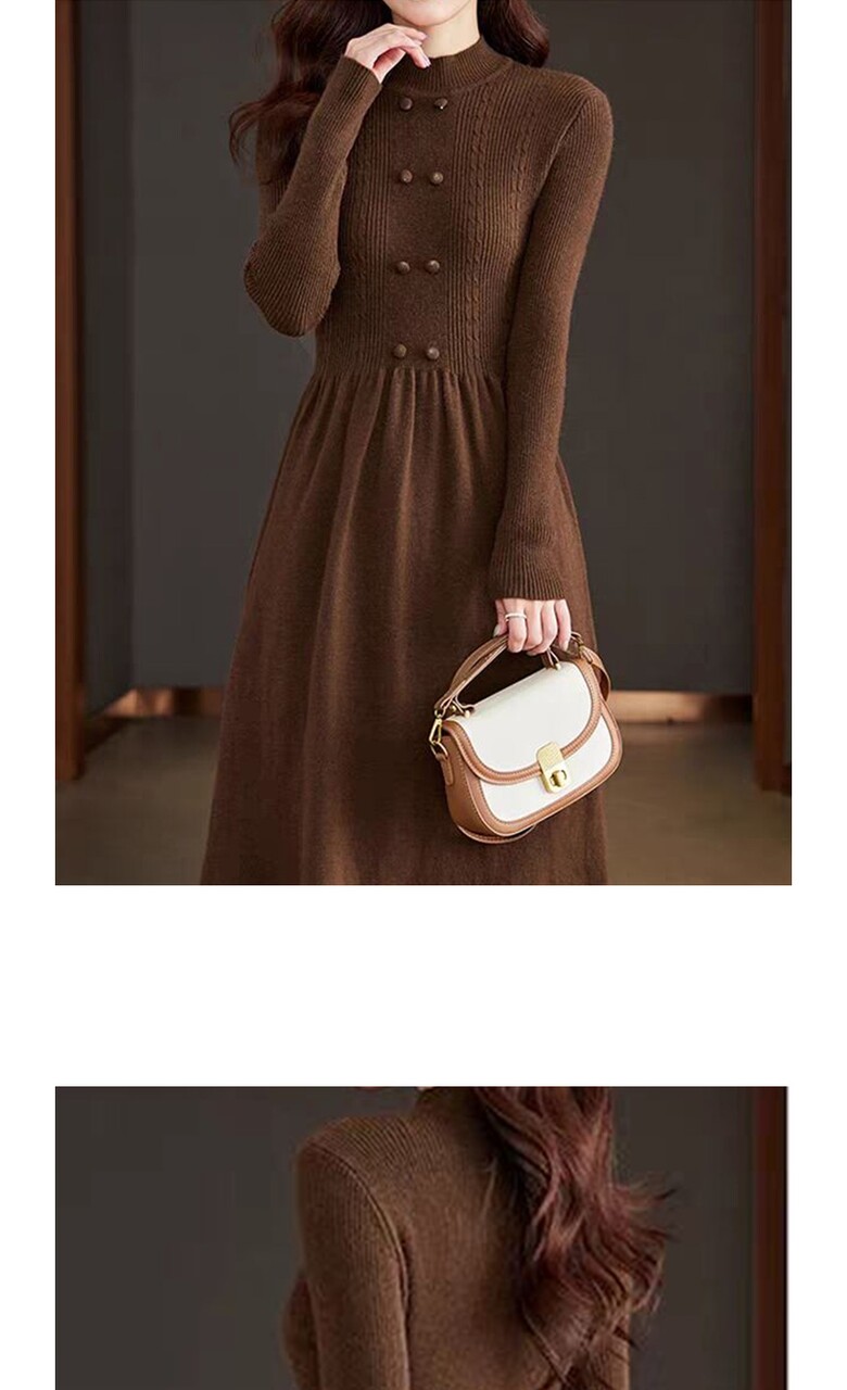 [비바로그] 아론 반하이넥 더블단추 니트 원피스