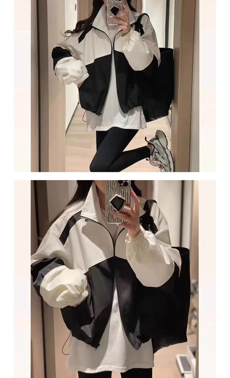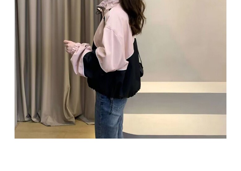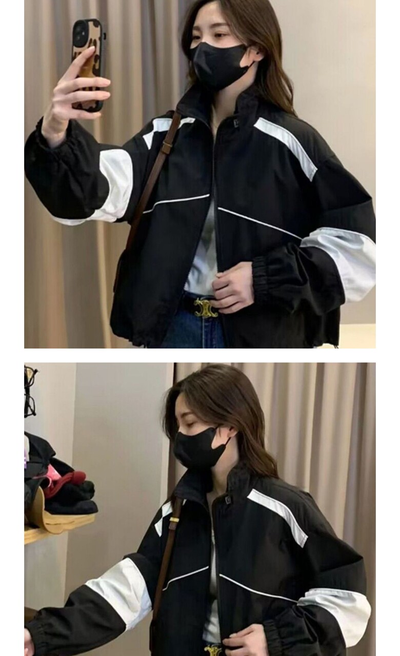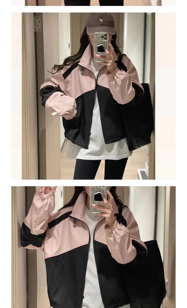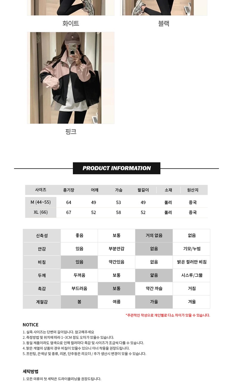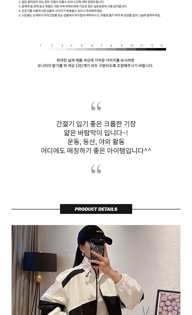 크롭 얇은 소재 배색 바람막이 점퍼 간절기 아노락 경량 아우터