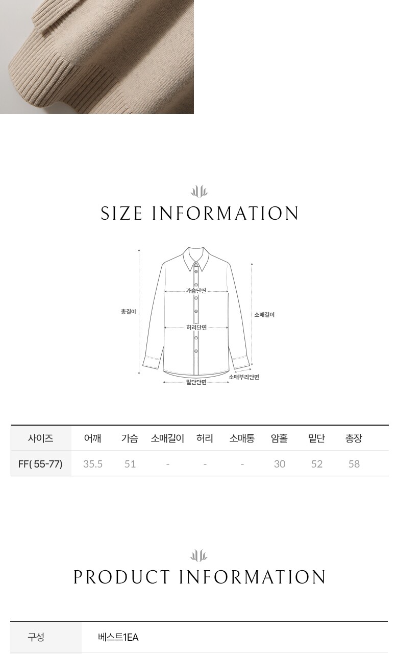 • 처음 배송된 상품상태와 다를 경우(세탁/착용 후 외출하신 경우) 반품이 불가합니다.