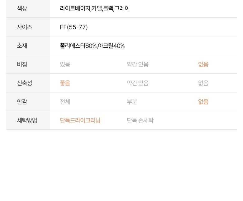 2. 색상 카멜,블랙,라이트베이지,그레이