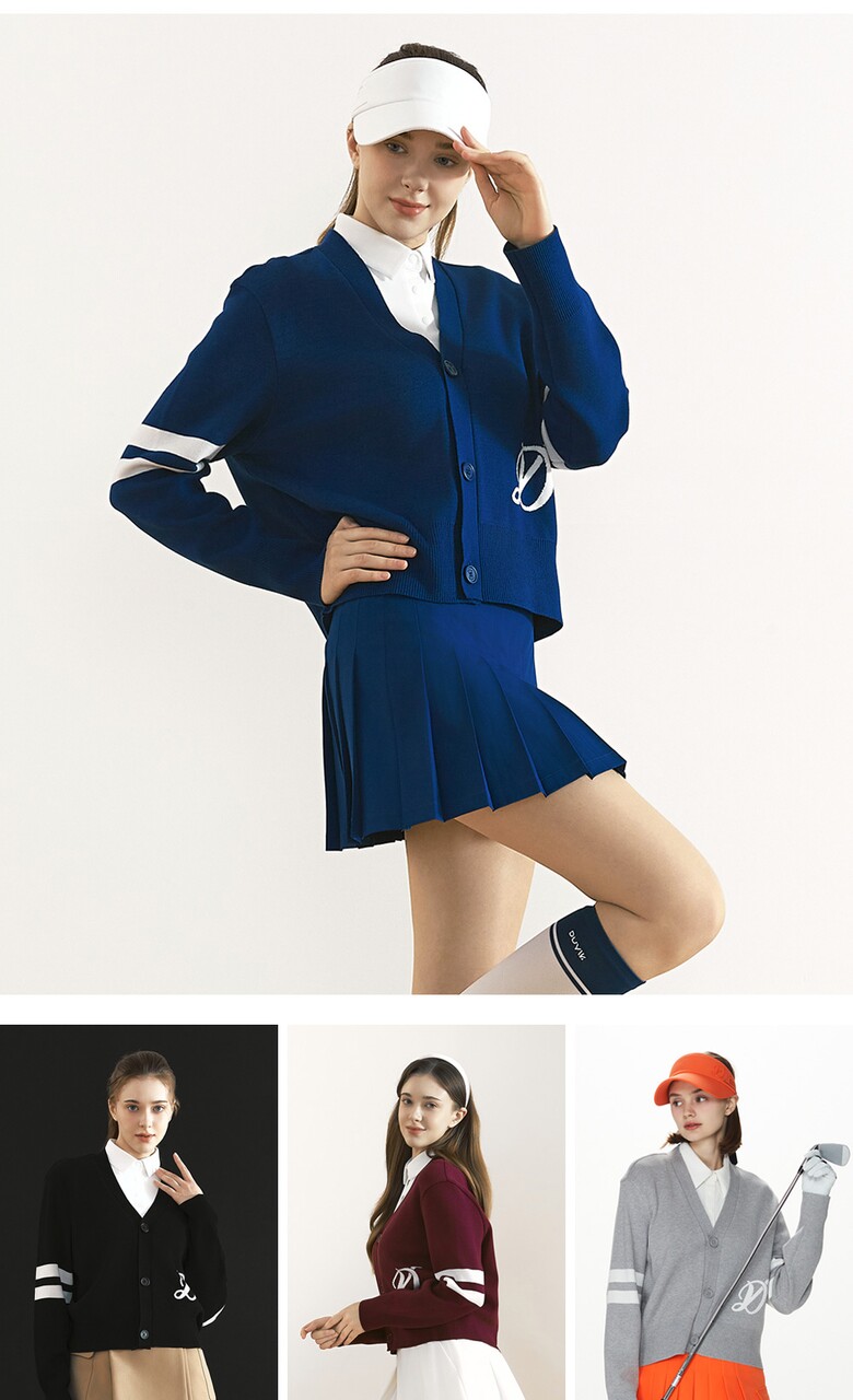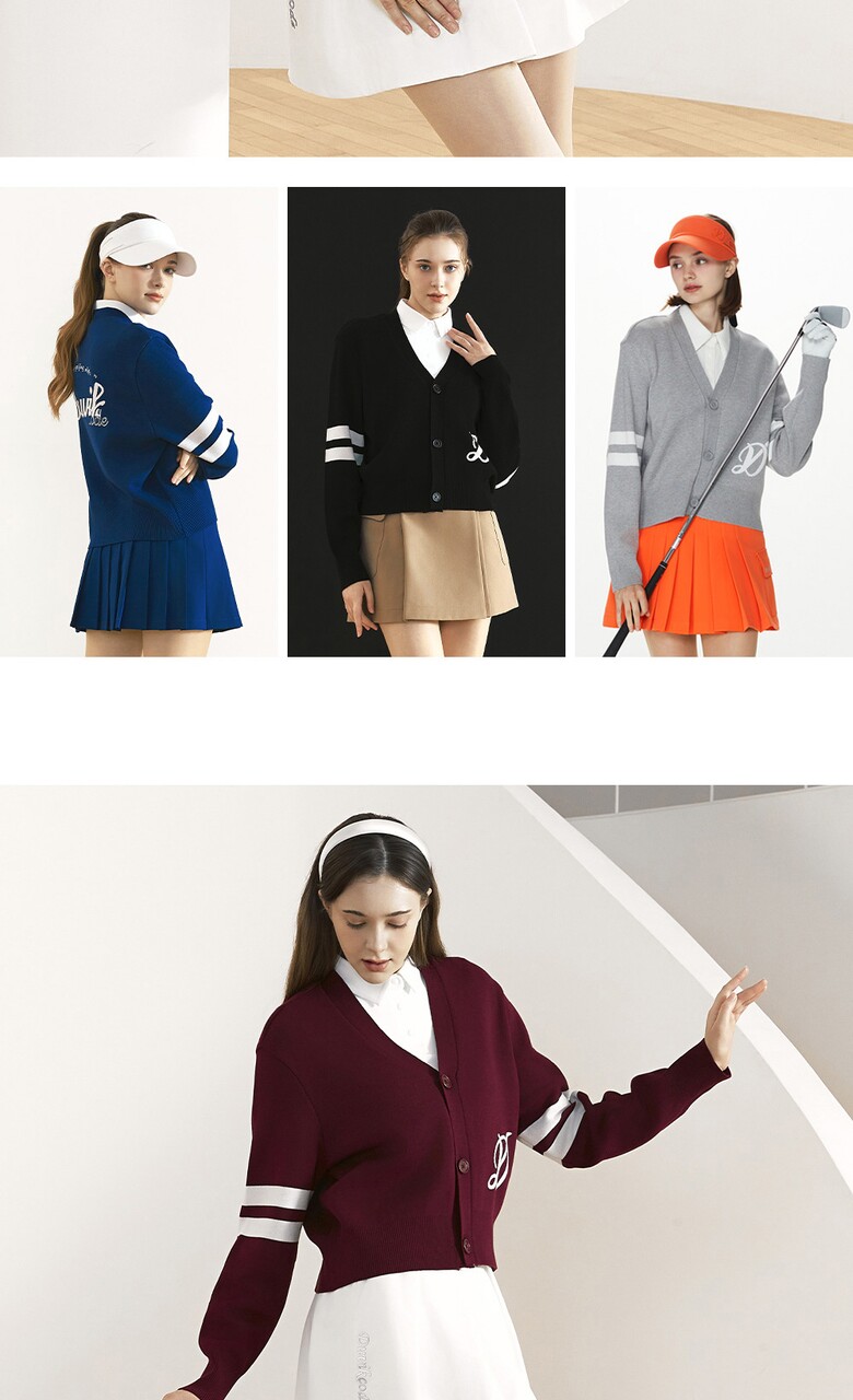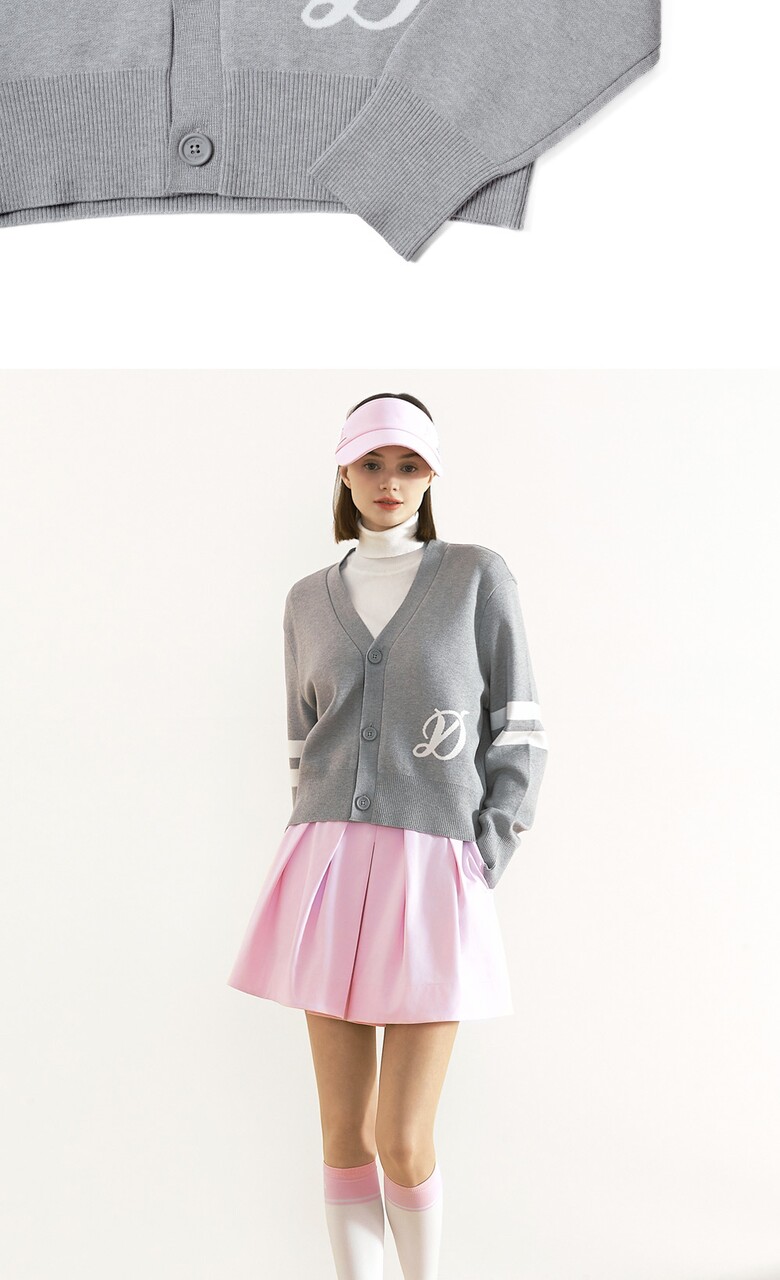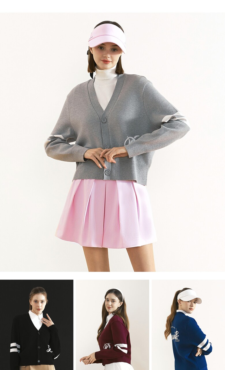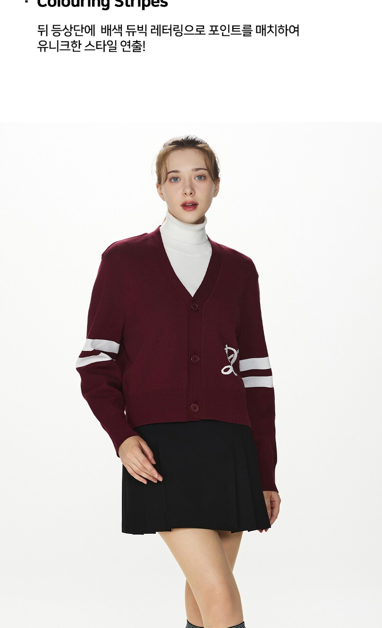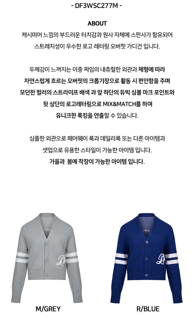 듀빅 여성 로고 레터링 배색 오버핏 가디건 DF3WSC277