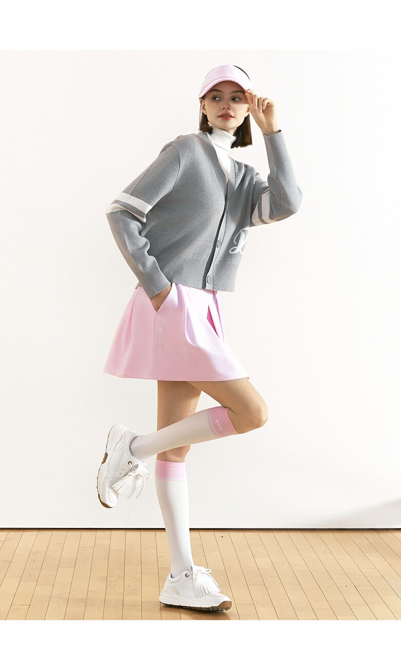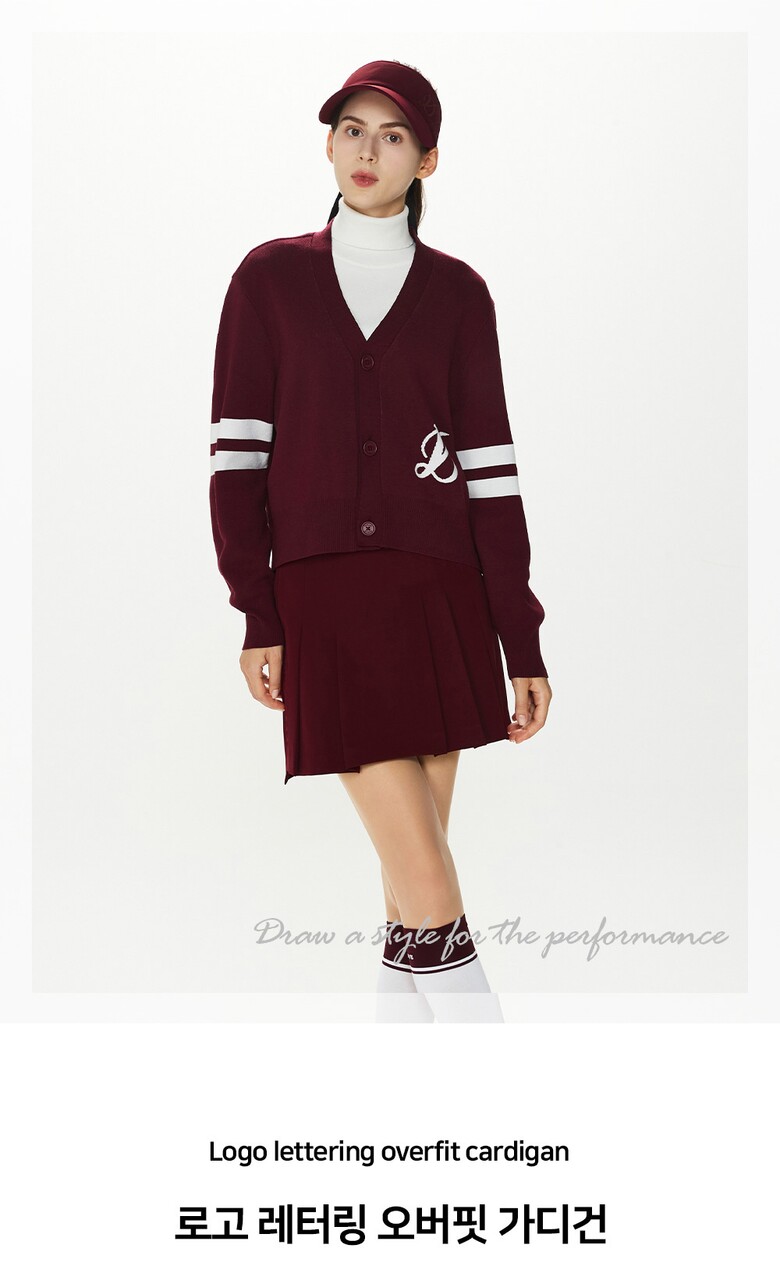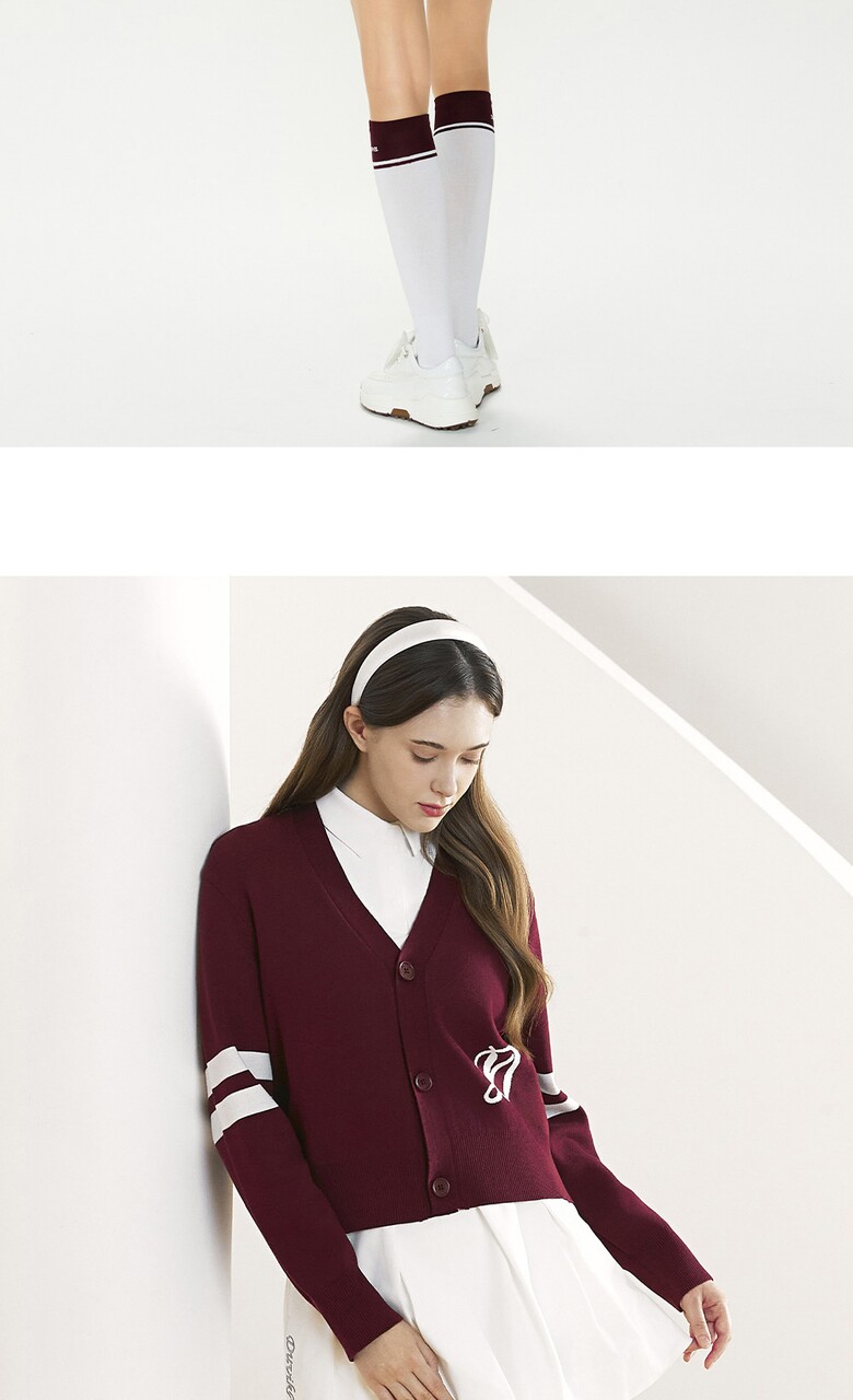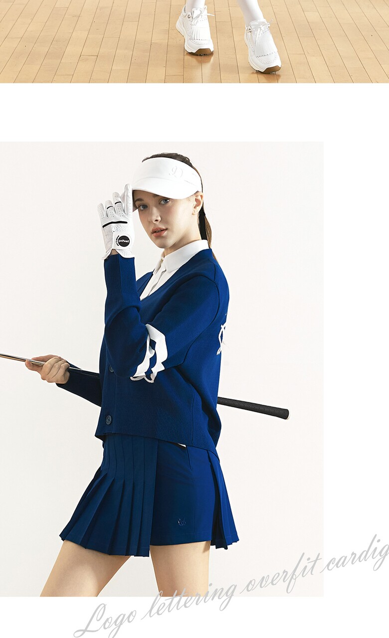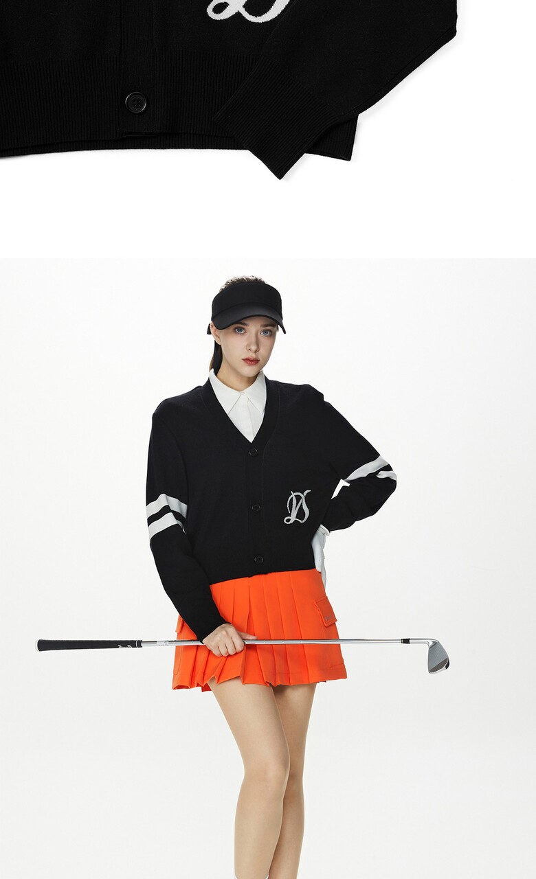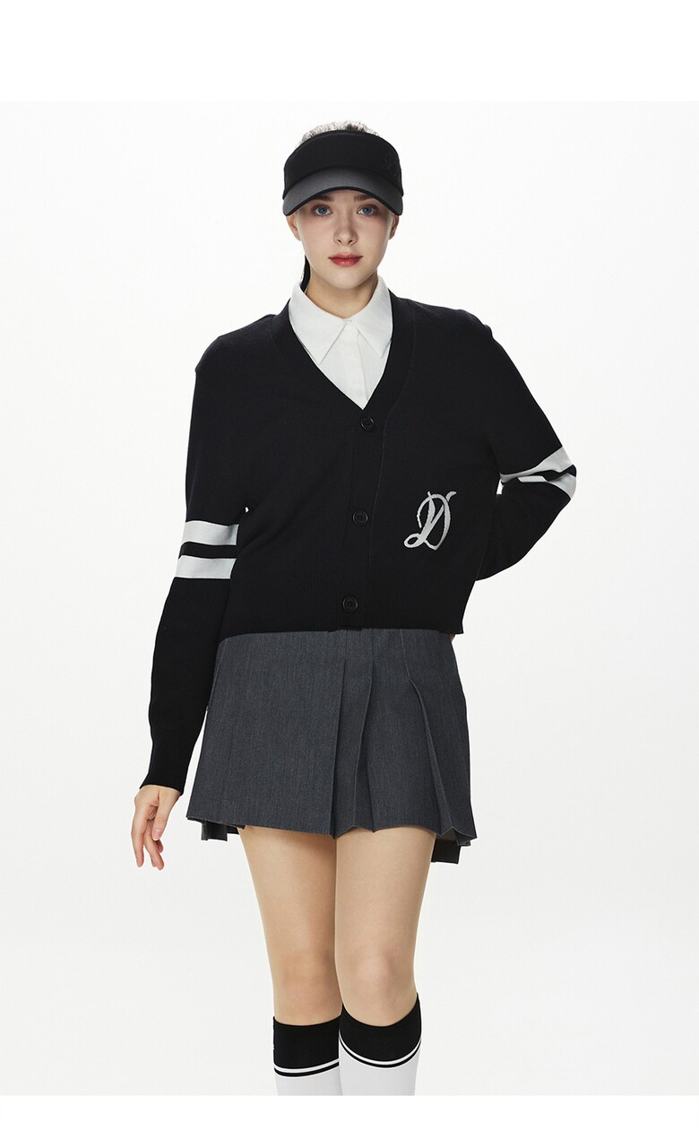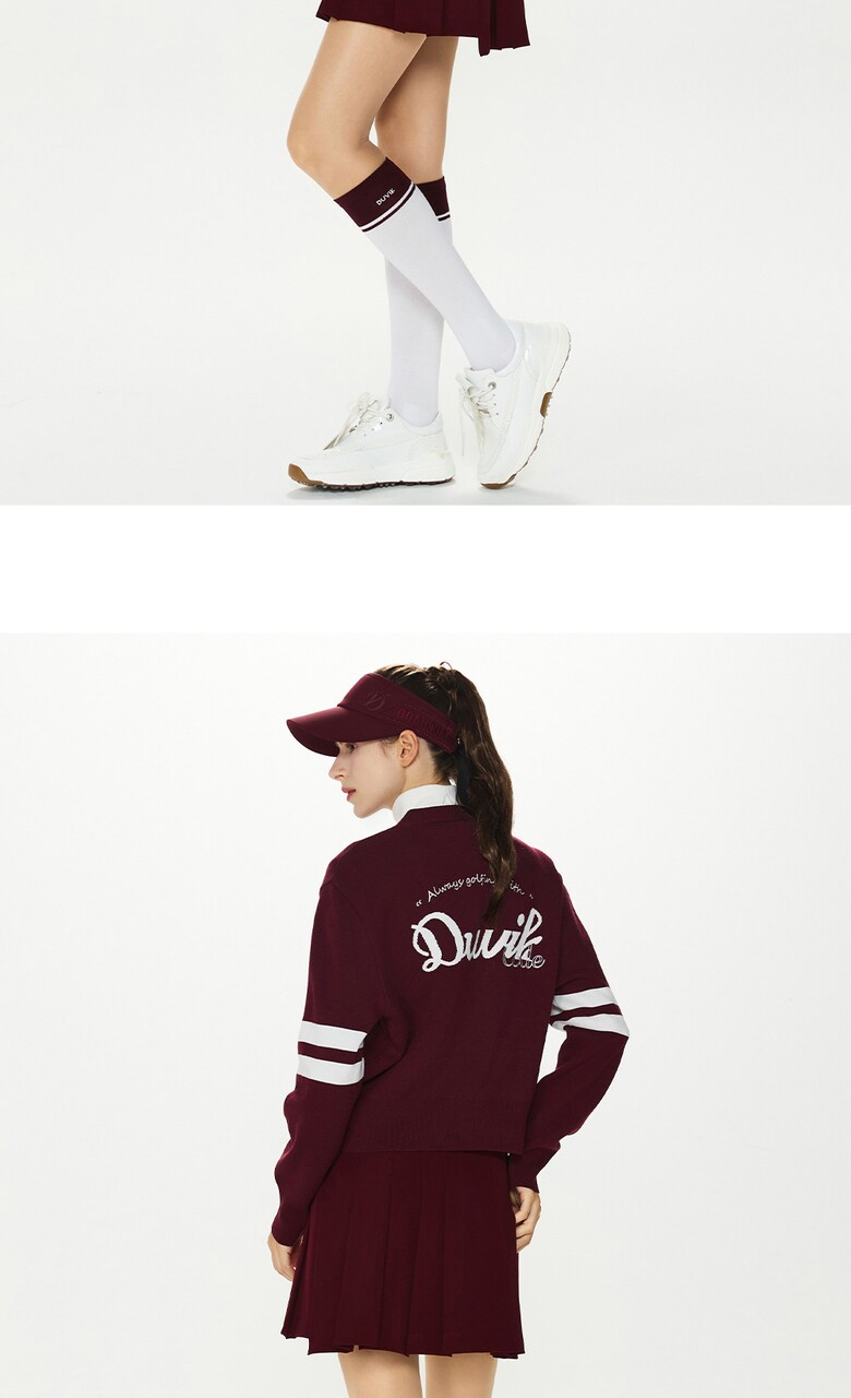 듀빅 여성 로고 레터링 배색 오버핏 가디건 DF3WSC277
