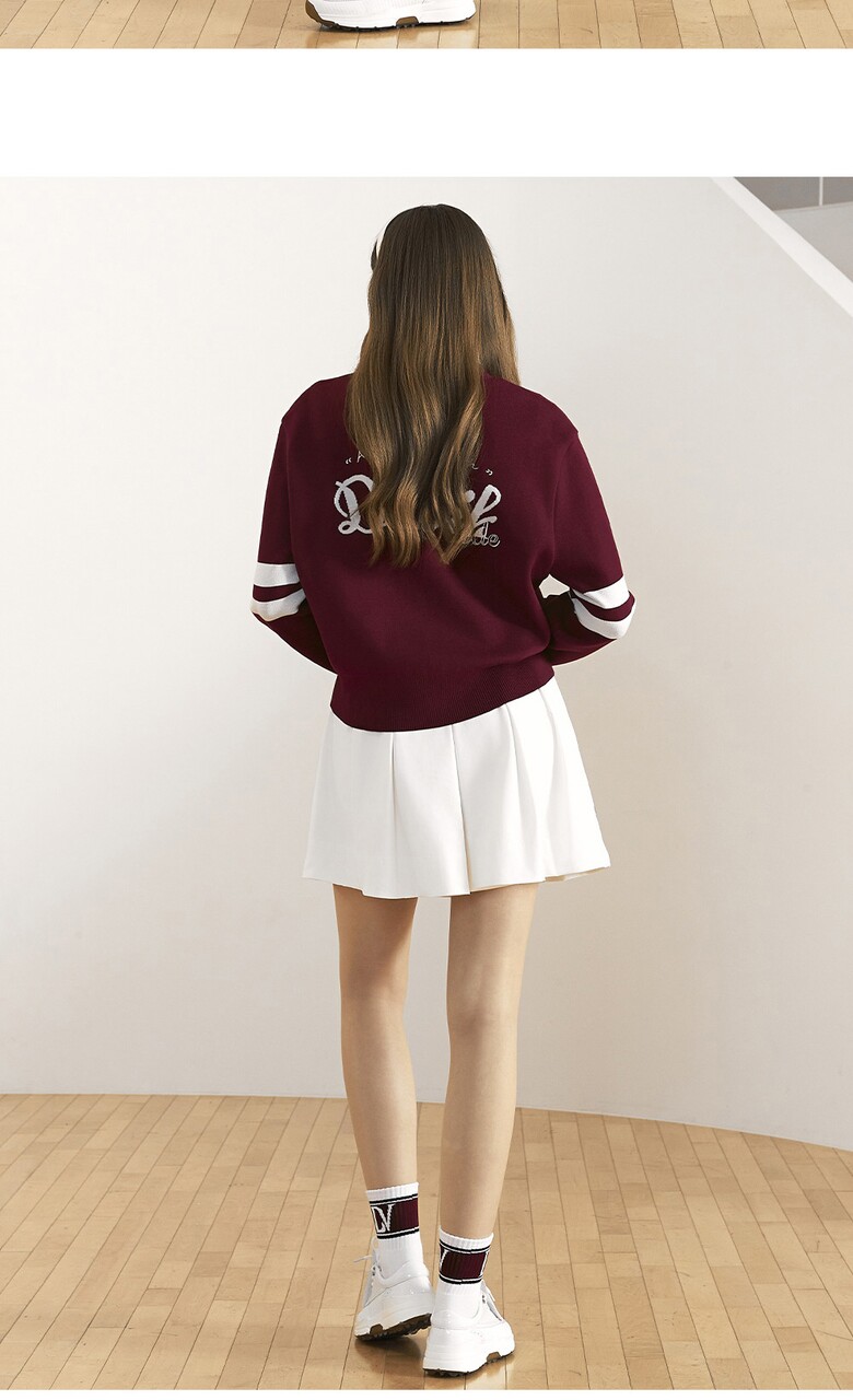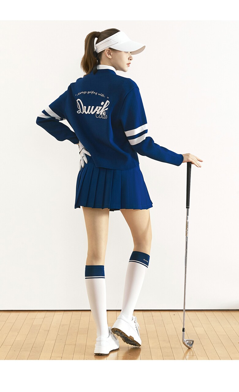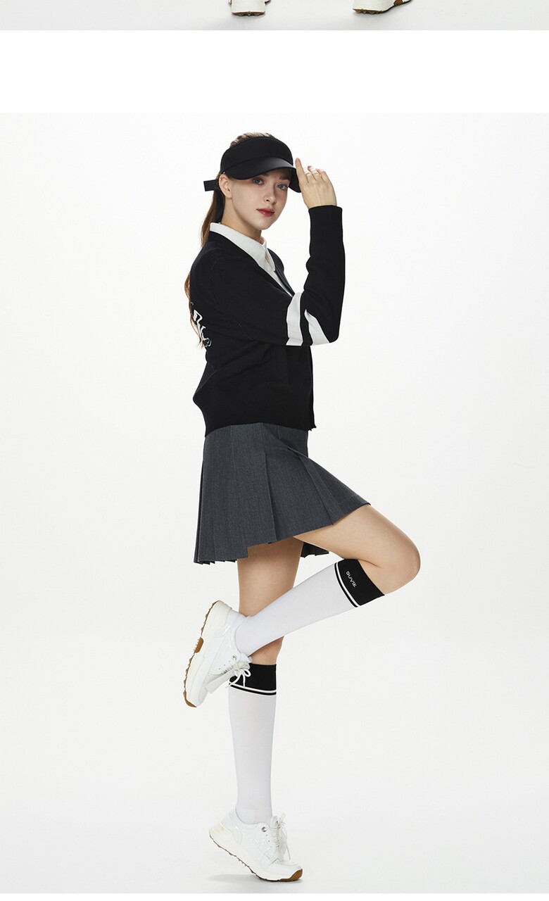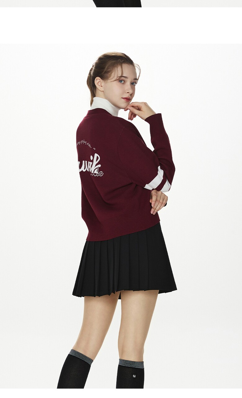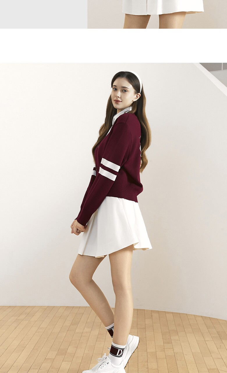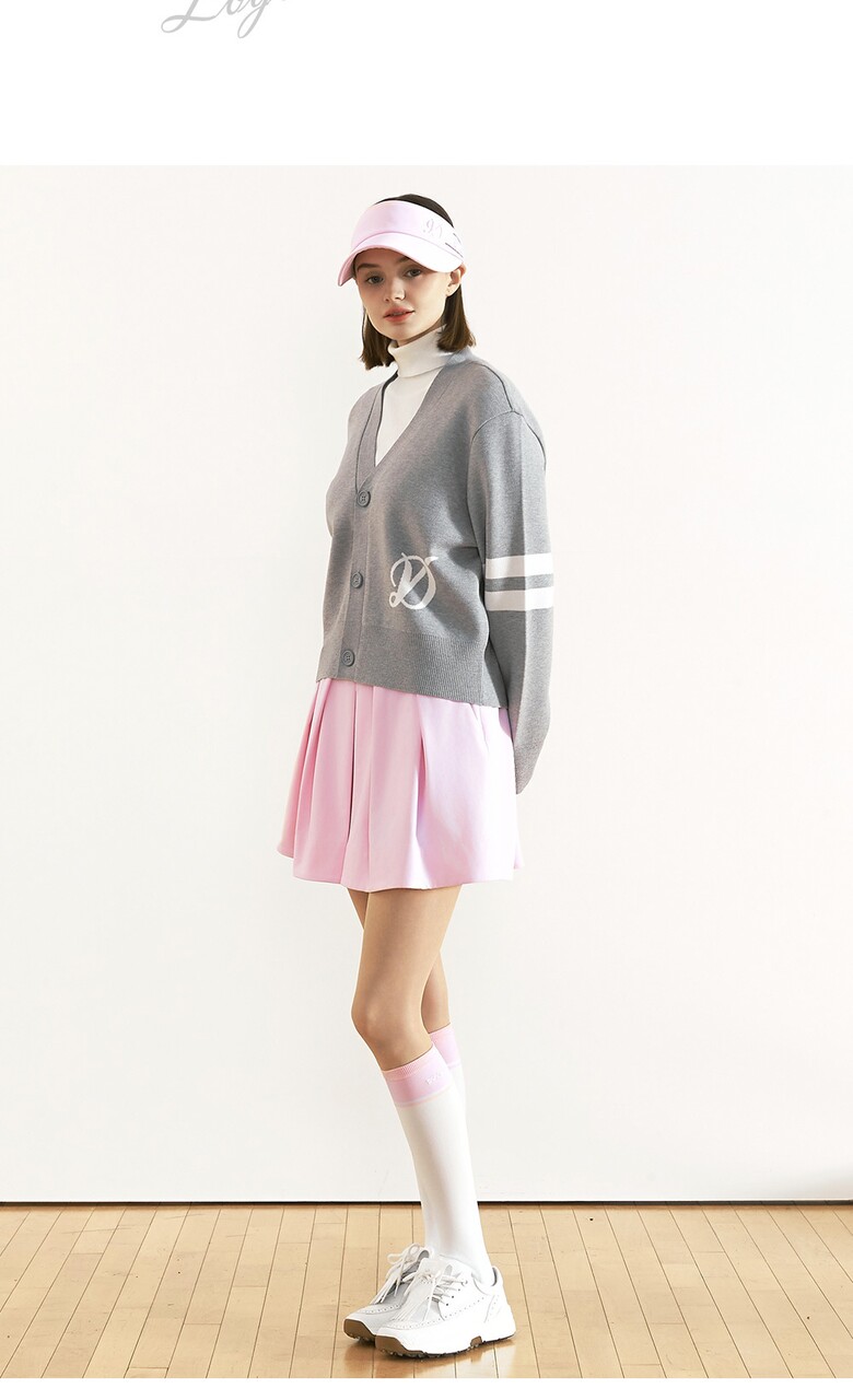 듀빅 여성 로고 레터링 배색 오버핏 가디건 DF3WSC277