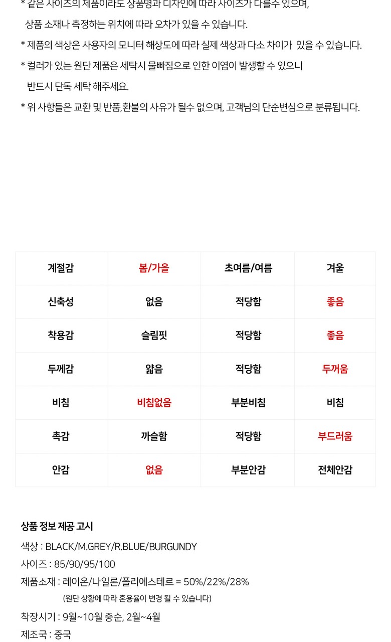 1. 제품 소재 (섬유의 조성 또는 혼용률을 백분율로 표시, 기능성인 경우 성적서 또는 허가서) | 상품 이미지 참고 |