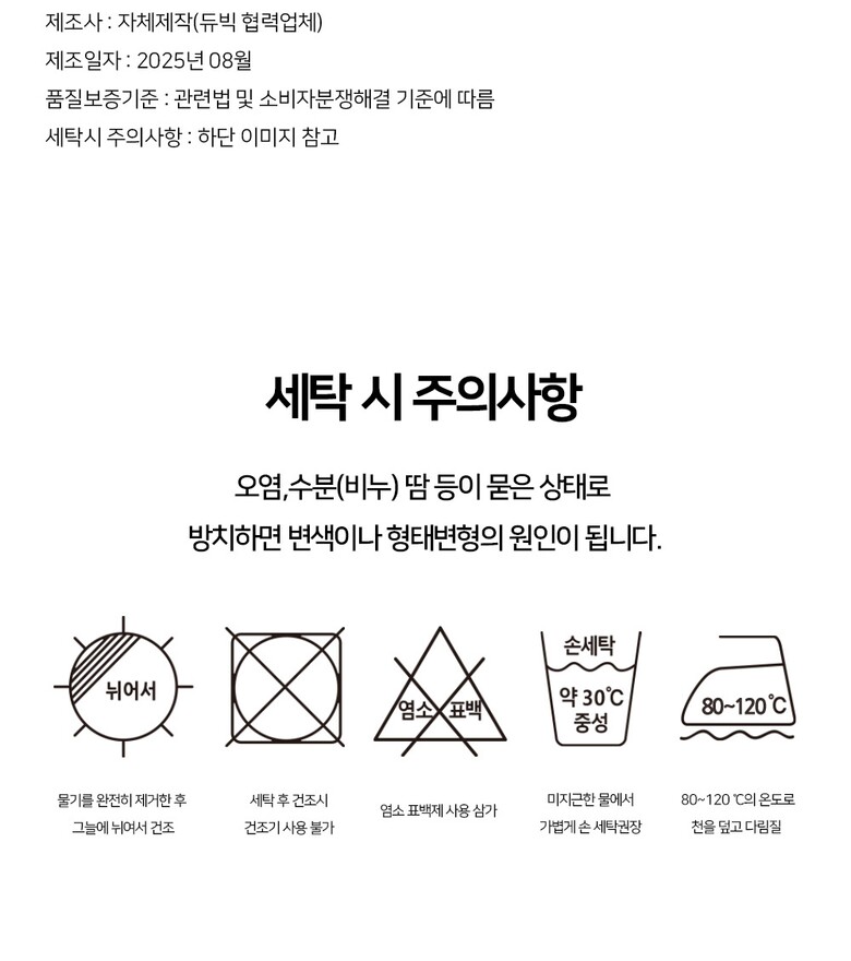 6. 세탁방법 및 취급시 주의사항 | 상품 이미지 참고 |