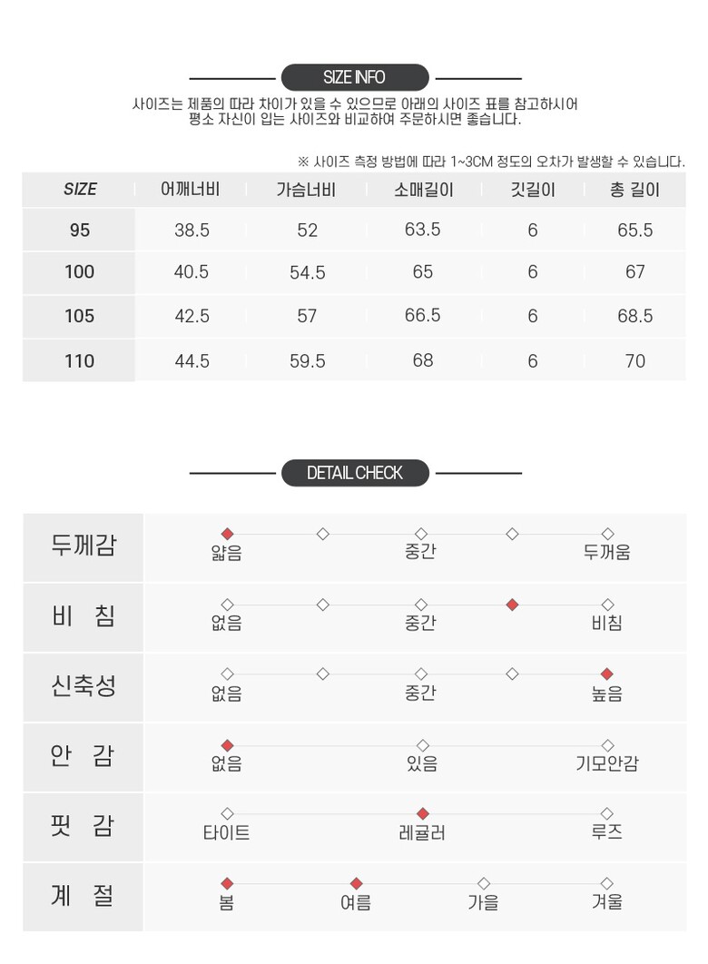 1. 제품 소재 (섬유의 조성 또는 혼용률을 백분율로 표시, 기능성인 경우 성적서 또는 허가서) | 겉감:폴리에스터92%,폴리우레탄8%,안감:나일론80%,폴리우레탄20% |