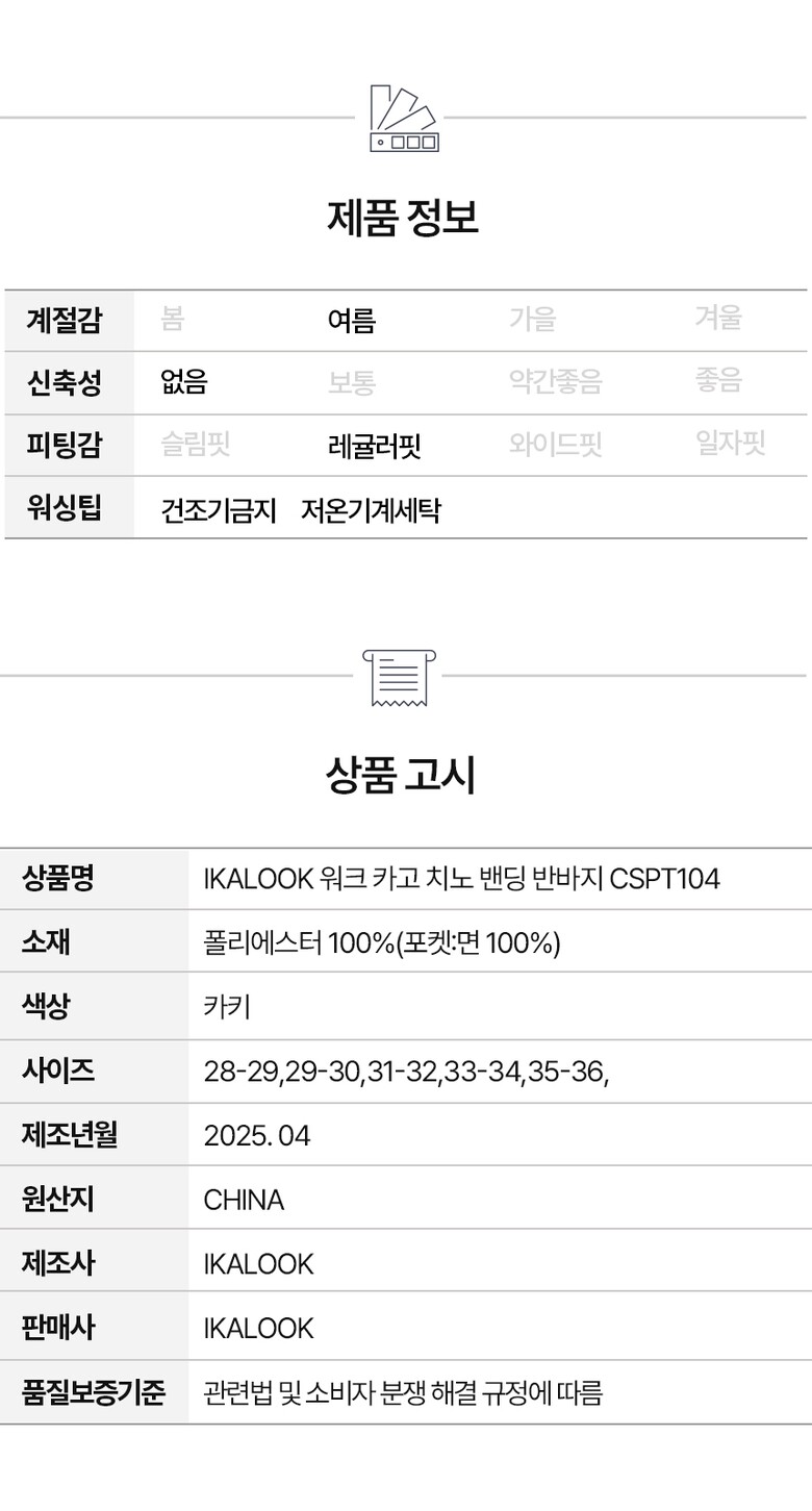 IKALOOK 워크 카고 치노 밴딩 반바지 CSPT104