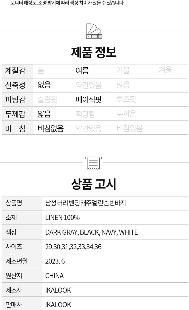 남성 허리 밴딩 캐주얼 린넨 반바지 ASPT101
