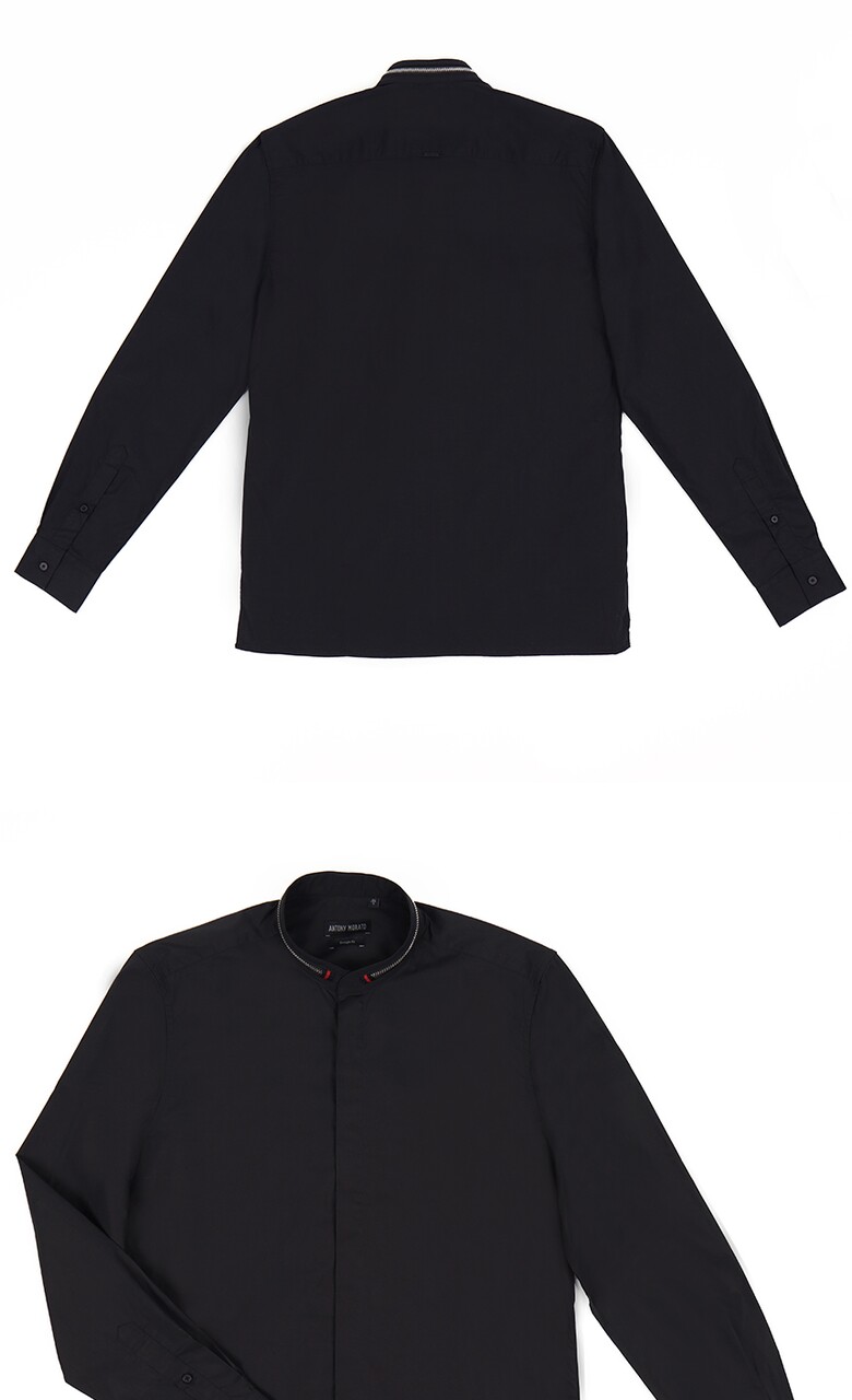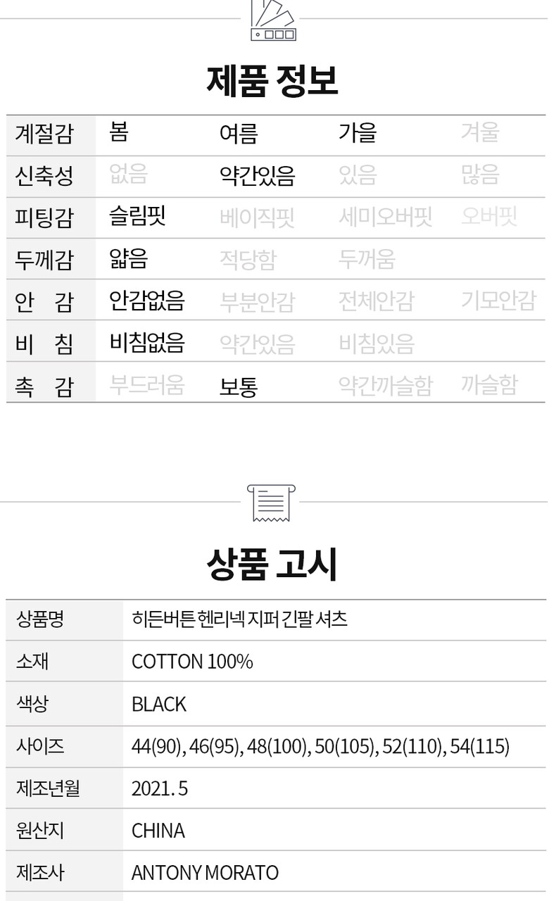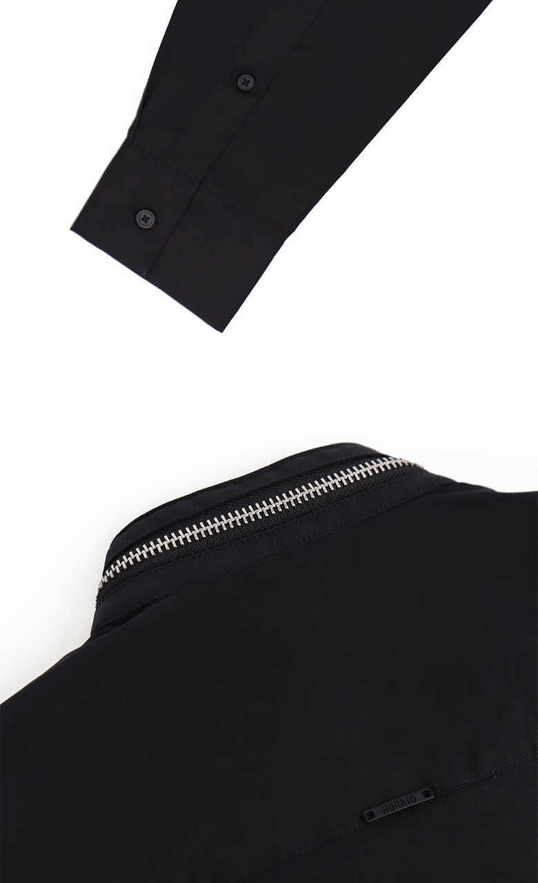 히든버튼 헨리넥 지퍼 긴팔 셔츠 SH134