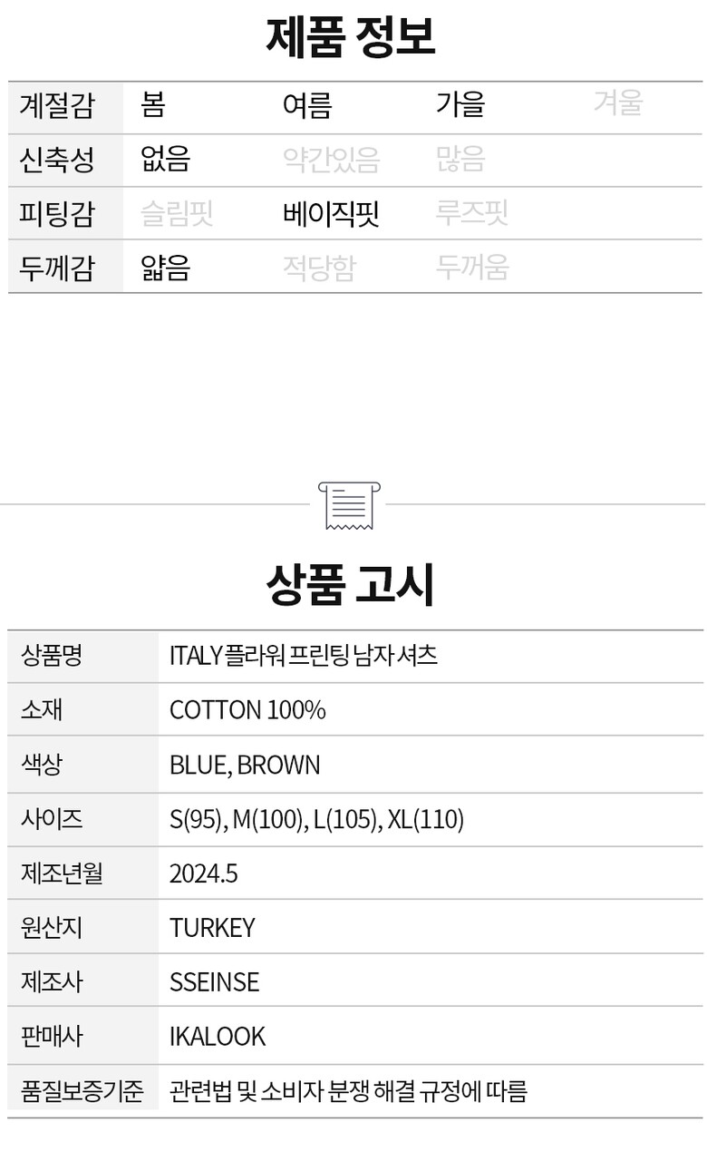 IKALOOK ITALY 플라워 프린팅 남자 셔츠 BSH103