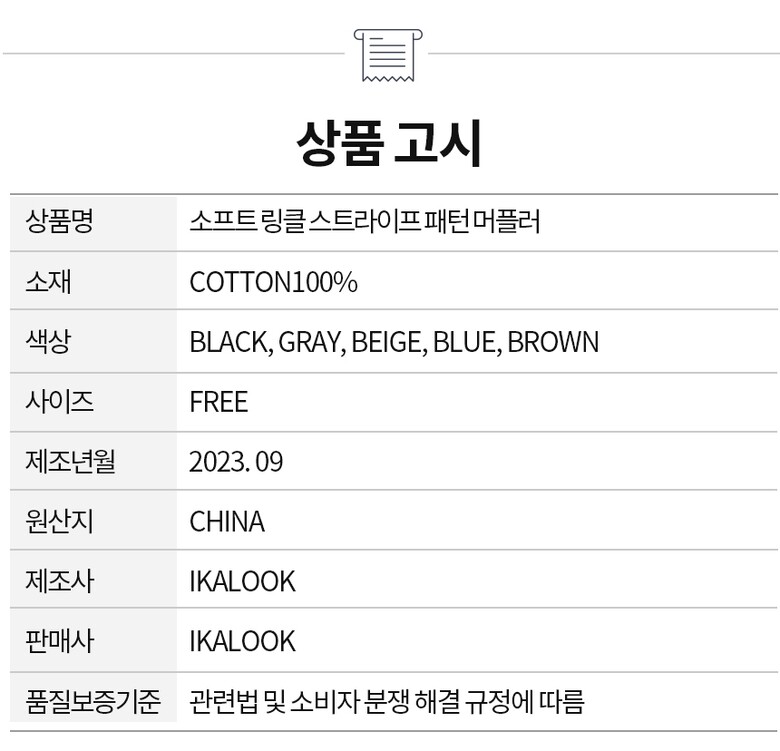 소프트 링클 스트라이프 패턴 머플러 AMU130