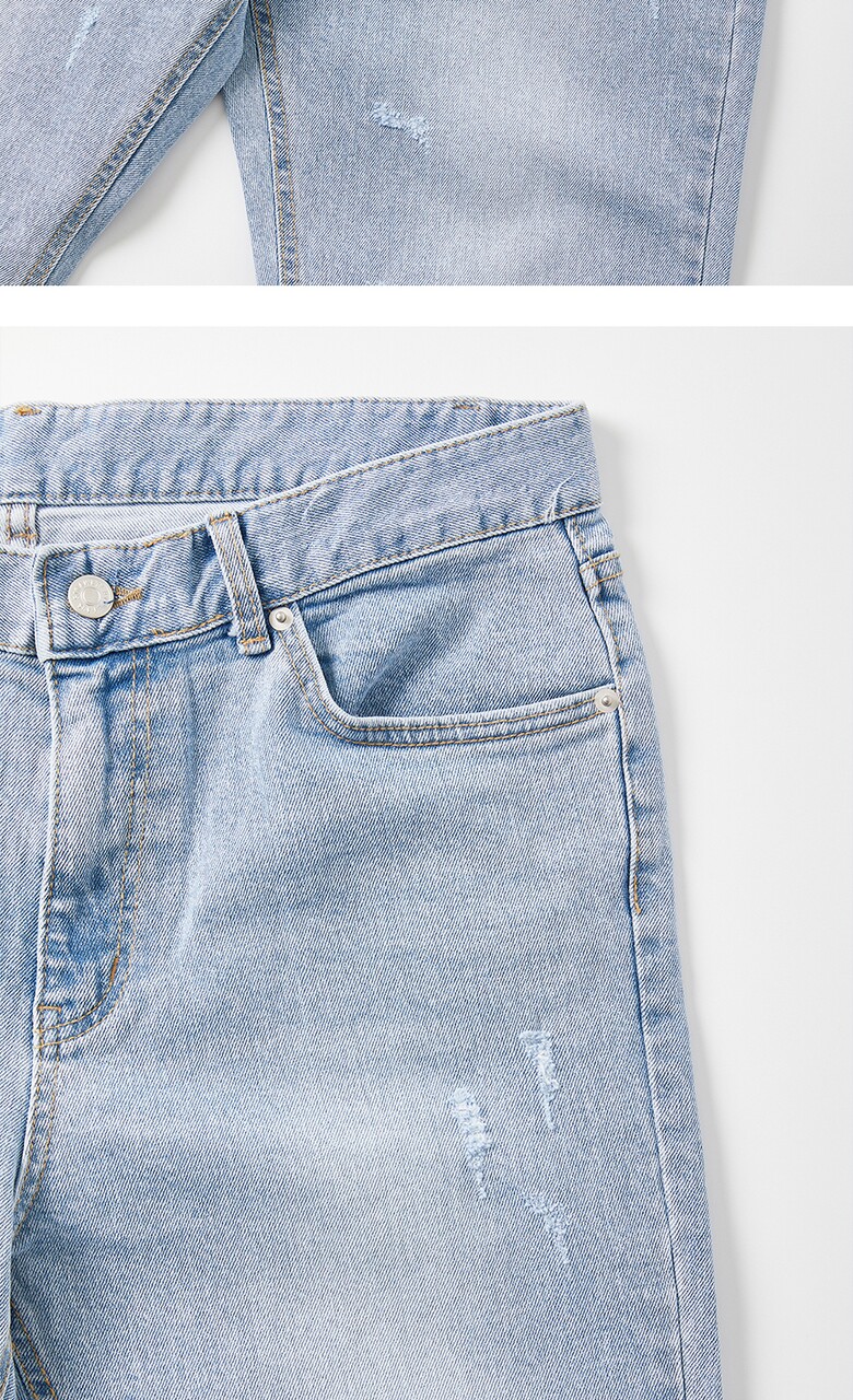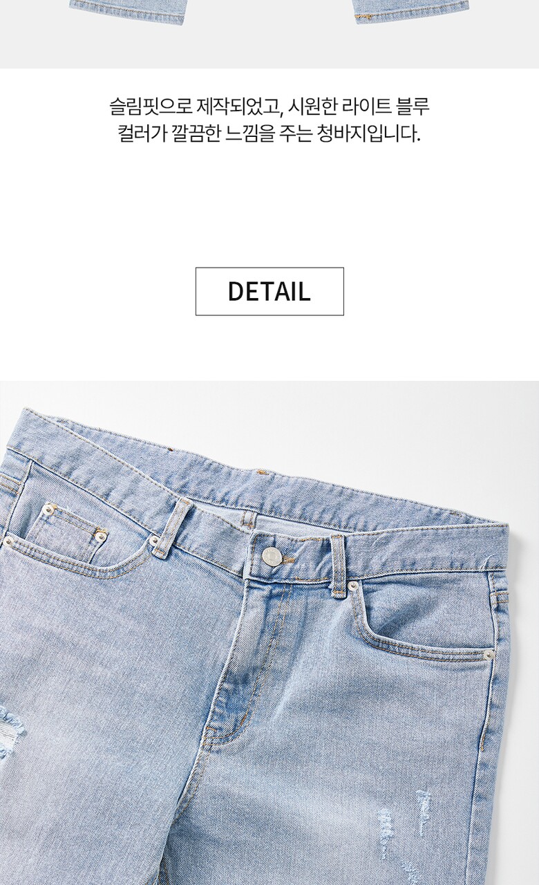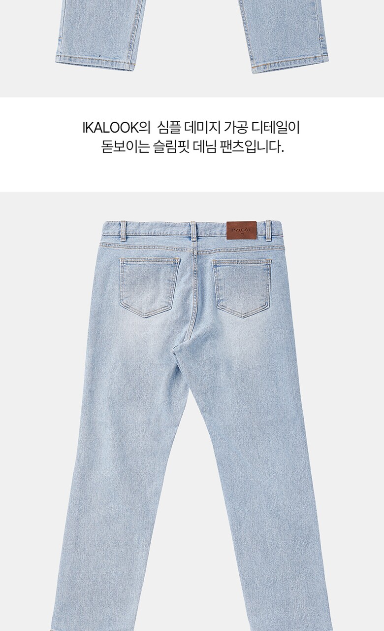 IKALOOK 슬림핏 심플 데미지 연청 스판 청바지 CJN105
