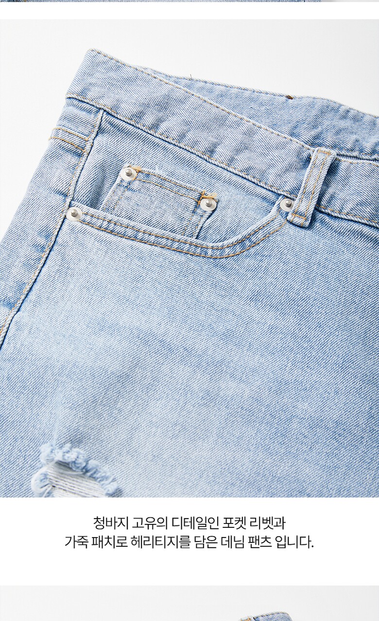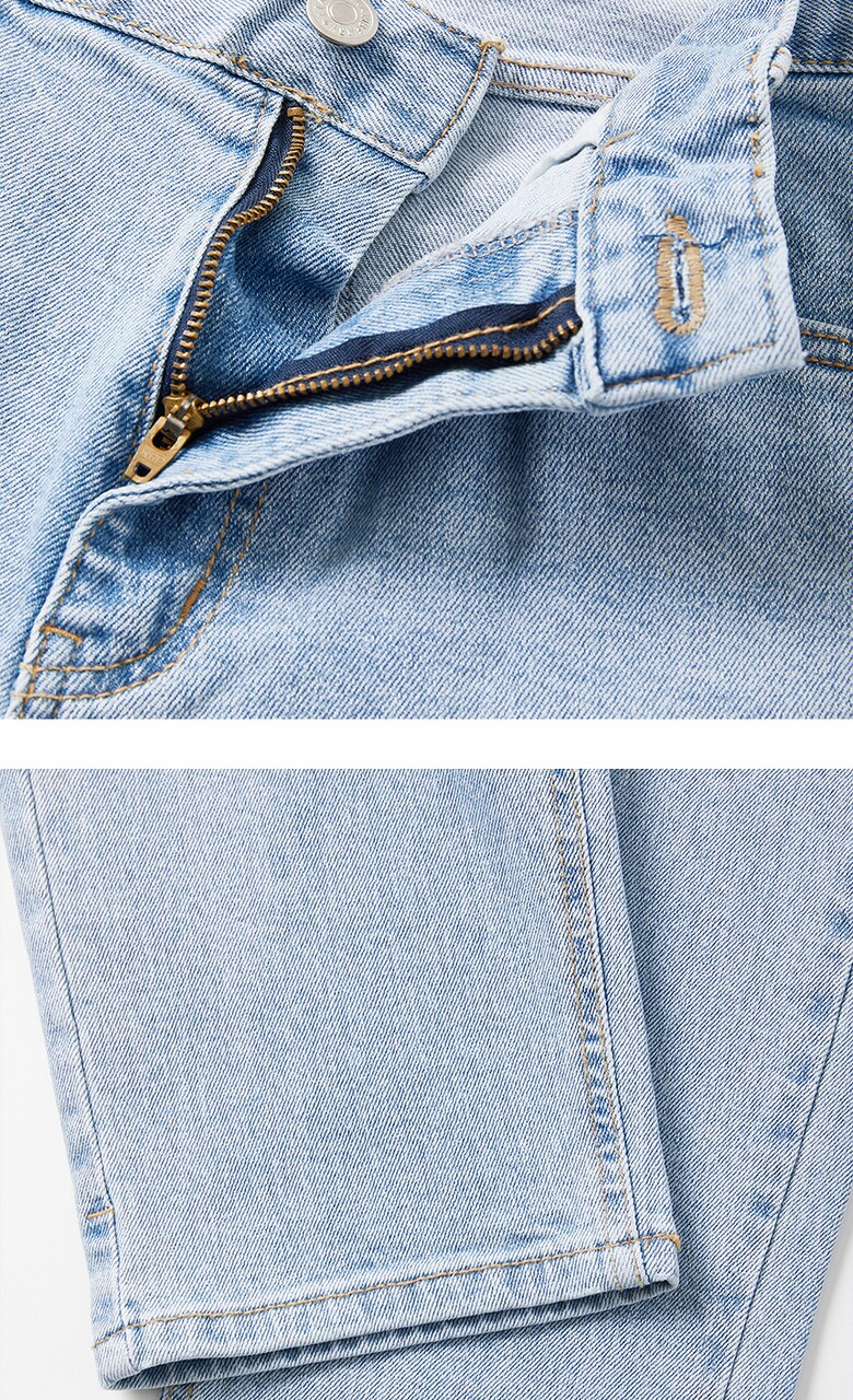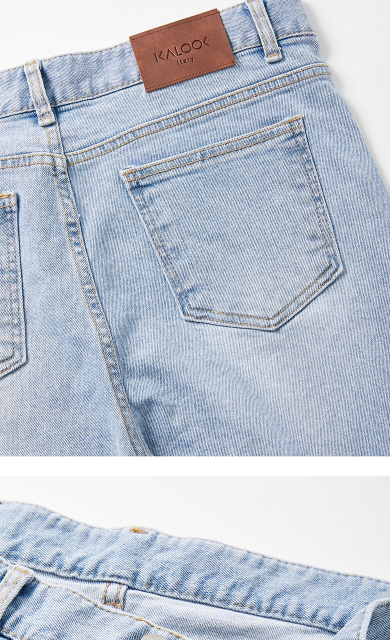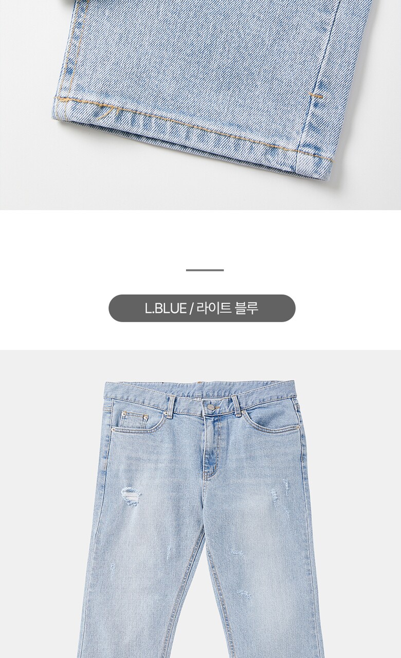 IKALOOK 슬림핏 심플 데미지 연청 스판 청바지 CJN105